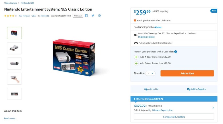 Some of you might be excited to hear that the NES Classic Edition is listed as in stock on Walmart's website. Don't be fooled, though: these aren't the NES Classics you're looking for. Instead, they're listings from third-party sellers, not Walmart itself, and the price has been suitably gouged as a result.