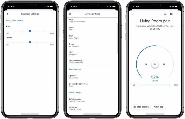 The good news is that Nest Audio doesn't get overwhelmed or distort. That not-so-good is that it just doesn't have that ample thump. You can manually adjust the treble and bass in the Google Home app, but there's no auto-calibration as the Google Home Max offers. Google says it left out Smart Sound by way of focusing its development efforts on the hardware instead.