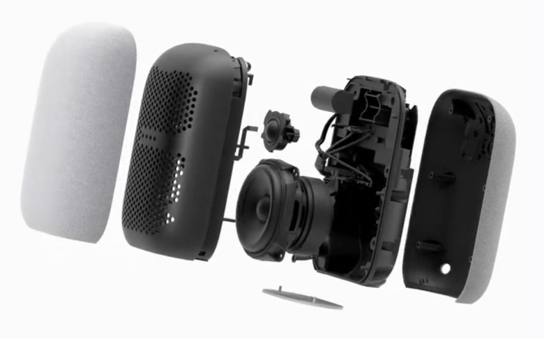 Audio-wise, however, it's a different story. Rather than a single 50mm full-range driver and two passive radiators, as in the Google Home, the Nest Audio has two drivers: a 75mm woofer and a 19mm tweeter. There's also more "back volume": that is to say, the amount of internal space the drivers have to resonate in.