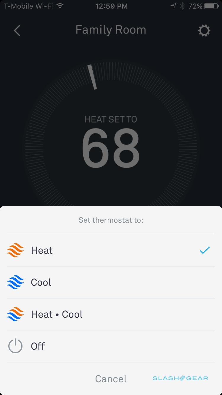 There are a variety of extra settings you can adjust, either on the thermostat itself or through the app, including specifying whether it's in direct sunlight (which could affect the internal thermometer) and whether you want the fan to run automatically every day. Most of the more granular factors, however, fall under the Nest Sense umbrella, which the thermostat promises to learn for itself.