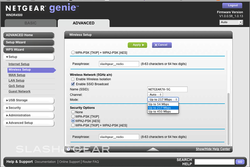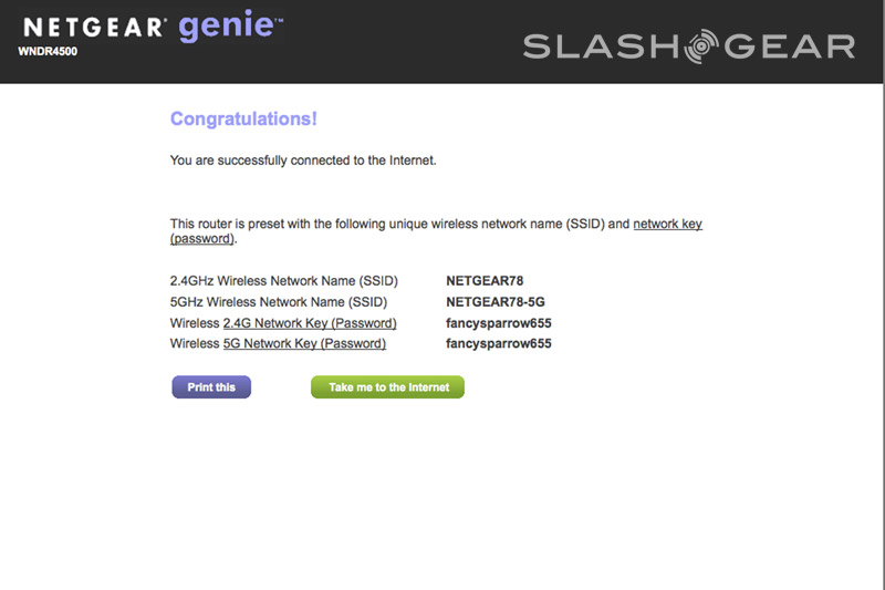 Initial setup is straightforward. Netgear prints a default SSID and wireless encryption key on the WNDR4500's box, and there's a simple wizard that guides you through the whole process. Netgear offers two different ways of accessing the router: those familiar with networking tech can go the regular way, and log into the WNDR4500's browser-based interface, while those who'd prefer a little hand-holding can run Netgear Genie.