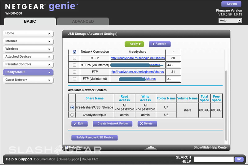 While the WNDR4500 handled FAT32 and NTFS drives with no problems, HFS and exFAT proved beyond its abilities: the HDDs simply would not mount. You also don't get the same sort of granular access control as you would on a dedicated NAS. For instance, if you want to share content via DLNA, the read/write access control must be left turned off; that means DLNA content is then not secured for FTP/HTTP remote access.