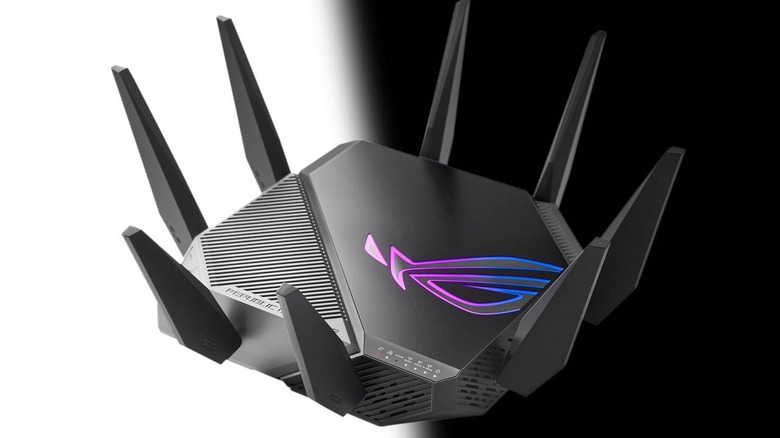 The ROG Rapture GT-AXE11000 tri-band router works with "combined concurrent WiFi speeds of up to nearly 11000 Mbps." That includes 1148 Mbps on the 2.4 GHz band, 4804 Mbps on the 5 GHz band, and 4804 Mbps on the 6 GHz band.