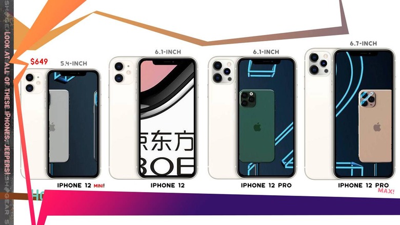 The lesser two devices, iPhone 12 and 12 mini (not to be mistaken for the iPhone X DIY mini), will have very similar features save a slightly different display size. The Pro models will have advanced camera arrays and sensors and significantly higher prices. The size of the display of the iPhone 12 and iPhone 12 Pro will likely be the same – so it'll be interesting to see how Apple makes their differences clear at a glance.