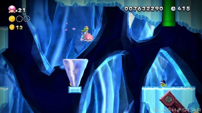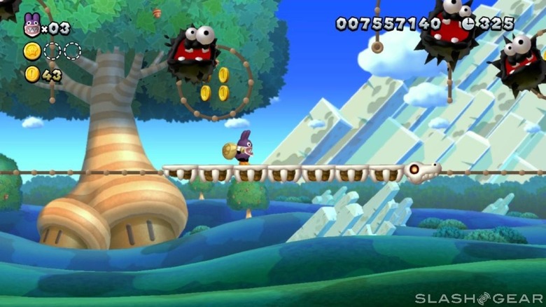 Nabbit makes the game even easier, but those who played the New Super Luigi U expansion for the original game (which is included here as well) already know that. Nabbit can't be harmed by enemies in any meaningful way, instead walking right past them most of them. He can't use power ups either, but there's little point in using them when traps like pits, lava, and those that crush you are the only real danger.