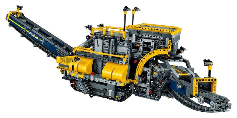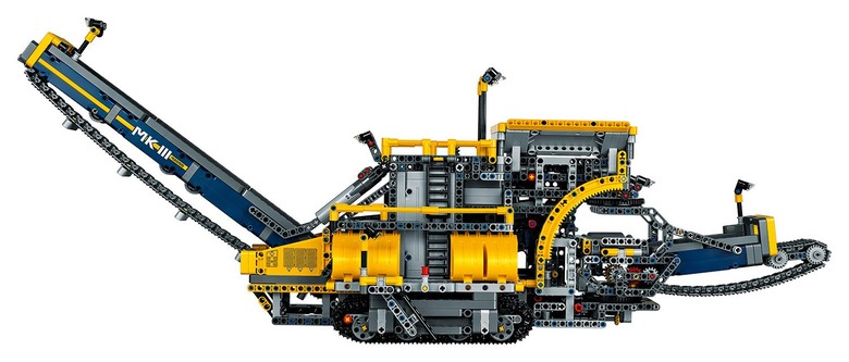 According to a LEGO release, this set's Power Functions motor allows users to "activate the conveyor belts, rotate the massive superstructure and maneuver the colossal machine into position." The boom allows the user to "lower the gigantic, digging bucket wheel and convey the mined material to the waiting mine truck."
