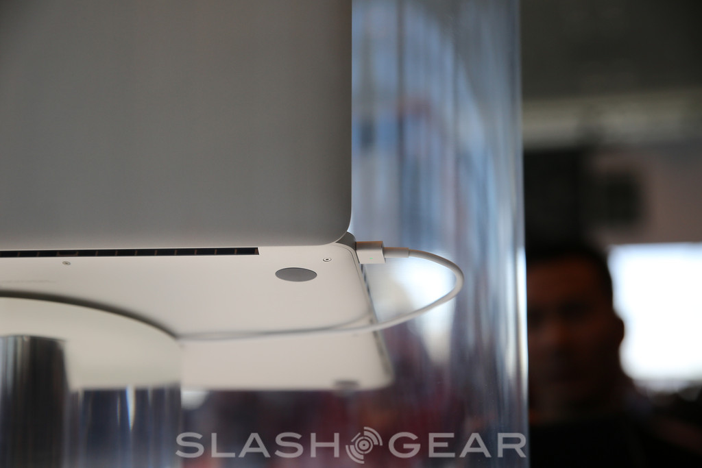 The styling is unmistakably MacBook Pro – there's none of the taper of the MacBook Air, for instance – looking like the existing model (which will stay on sale, upgraded with Ivy Bridge processors) only condensed down. The ports have been usefully split between both sides – none of the struggles getting two fat USB sticks or modems to cohabit alongside each other.