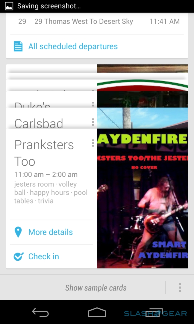 What we could try is the new Google Now, which introduces fresh cards highlighting nearby events and concerts, upcoming hotel and flight reservations, places known for being photography hot-spots, and what movies are showing in nearby theaters. Voice search gets an update too, and can now be used – if you speak sufficiently clearly, and have a data connection – to set and search appointments along with open up apps. It's worth noting, though, that Jelly Bean 4.1 users can already try the new features by updating the Google Search app on their device.