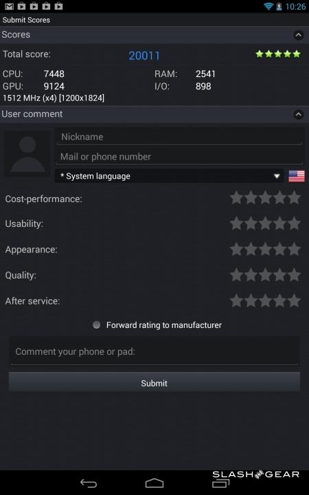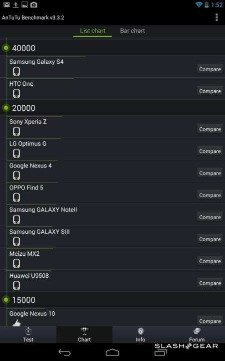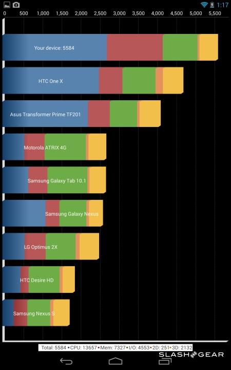 Benchmarks are admittedly an artificial way of gaging performance, but with that caveat it's fair to say the new Nexus 7 does particularly well. In the Quadrant test of overall processor power, 2013's Nexus 7 scored 5475, almost 2,000 points ahead of the Tegra 3 powered original Nexus 7. In Geekbench 2, the tablet scored 2,670, while in Antutu it managed 20,011. In the Sunspider test of browser speed, where a lower time is better, the new Nexus 7 completed in 1,177.1ms.