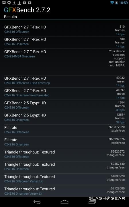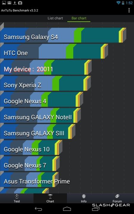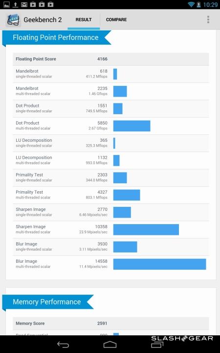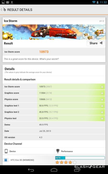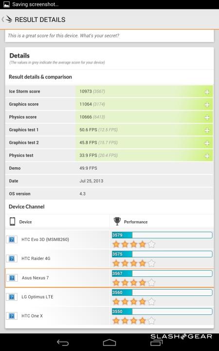 Raw numbers don't really explain the usability of the Nexus 7, however. It feels zippy and responsive, with apps loading quickly and multitasking avoiding the lag that can affect some lower-powered devices. One of the lingering complaints about the original Nexus 7 was that, over time, it would grow sluggish with continued use, something that was down to how Android handled cleaning its internal storage, but that's been addressed in Android 4.3 which should mean the new Nexus 7 stays perky even as you throw new apps at it.