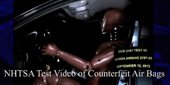 The National Highway Traffic Safety Administration has issued a warning about counterfeit air bags, which are being sold as replacement parts. What's the danger in counterfeit air bags, you ask? Explosions. Big, shrapnel-launching explosions.