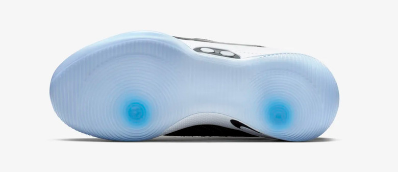 It's not immediately clear where the shoes plug in to charge up – or if they use wireless charging, etcetera – but there's gotta be a component at some point. Also of note – the laces aren't shown on the exterior of the shoe. Instead, they're all under the hood – likely to avoid the possibility that a lace might pull tight on an unsuspecting finger – ouch!