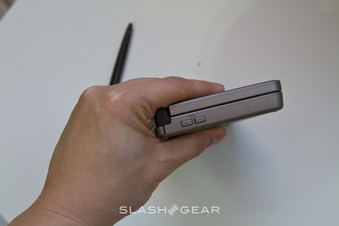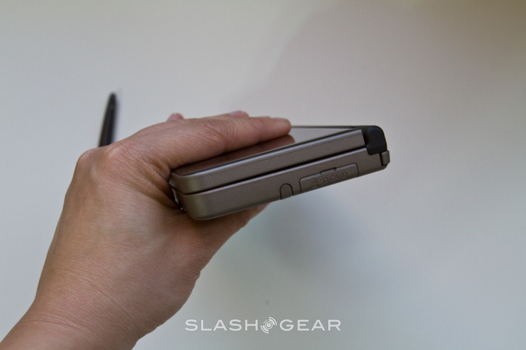 In comparison to the bigger chassis and the bigger displays, the DSi XL's controls are pretty much unchanged from the DSi. That includes the D-pad and buttons, together with the shoulder triggers, and even the slot-in stylus is the same as on the smaller handheld. As before, the controls are highly clicky, but we found that after some heavy duty play they started to loosen up a little. Nintendo also throw a second stylus into the box, this one looking more like a regular pen than the narrow stick that actually stows into the handheld. There's a lanyard loop at the end, but what looks like a pocket-clip is, bizarrely, simply a ridge of plastic.