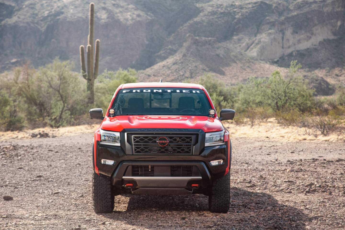 Starting with a brand-new 2022 Nissan Frontier PRO-4X with standard LED lighting, LED fog lights, Bilstein off-road shock absorbers, skid plates, and an electronic locking differential, the vehicle gets a moderate sprinkling of NISMO off-road parts.