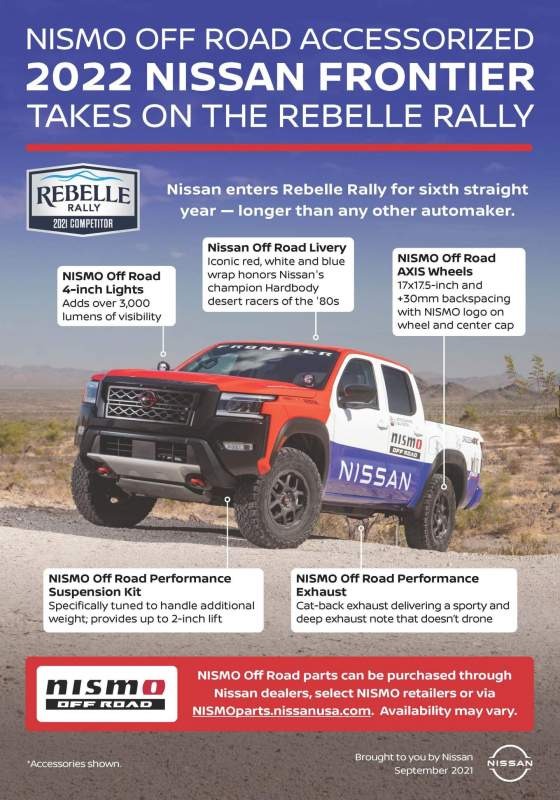 "We'll be rooting for Team Wild Grace at the 2021 Rebelle Rally, proving what the all-new Frontier and new NISMO Off Road parts can do over some of America's harshest landscapes," said Michael Soutter, vice president, Nissan Aftersales, Americas. "This truck has winning in its DNA."