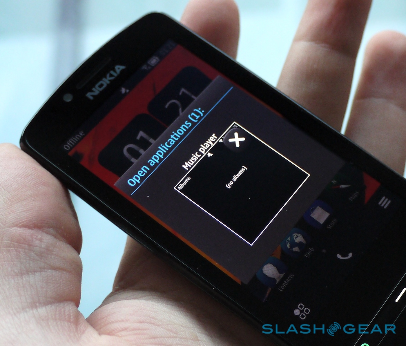 Then there's the notification menu, Symbian borrowing Android's pull-down status bar complete with shortcuts to quickly toggle mobile data, WiFi, Bluetooth and silent mode. New messages and other alerts are flagged up here, along with music player controls if there's media on the go.