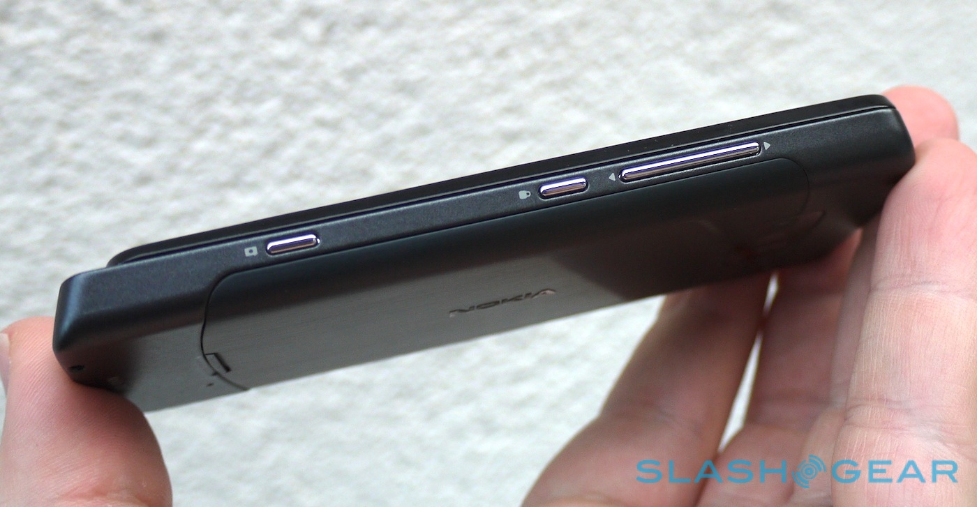 It's also impressively color-rich and bright, thanks to Nokia's ClearBlack technology. Colors are saturated and vivid, and the viewing angles are broad. A sheet of toughened Gorilla Glass sits on top of the 110 x 50 x 9.7 mm, 96g chassis, with physical call, menu and end/power buttons underneath. On the right side are slim – but easily pressed – volume, lock and camera keys. The whole thing is creak-free and sturdy.