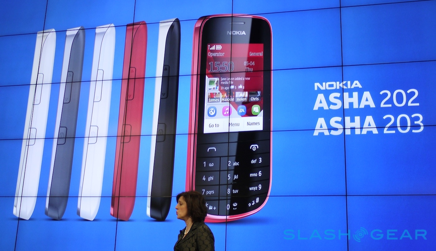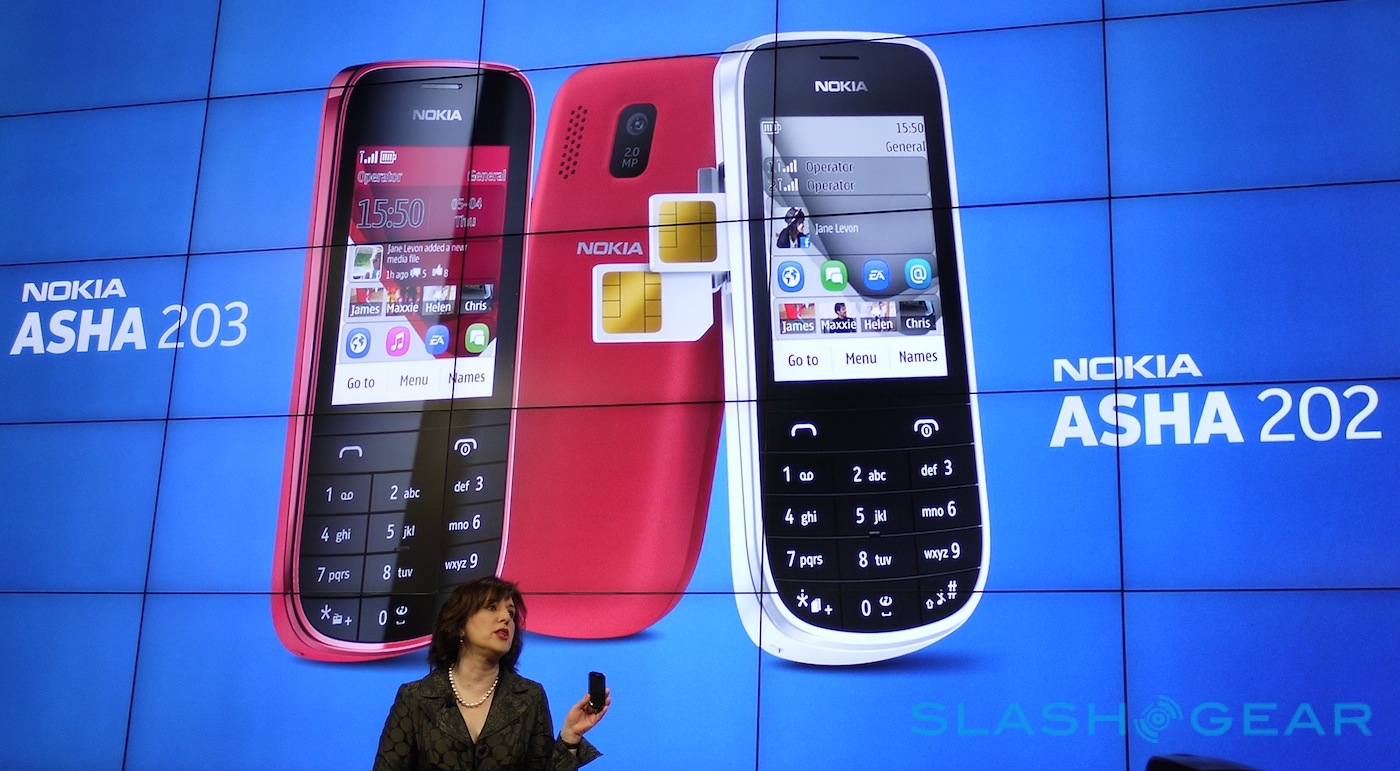 Nokia has expanded its entry-level Asha range, with three S40 new models at MWC 2012. The Nokia Asha 202, 203 and 302 are all targeted at developing markets or basic users, with the Asha 202 having dual-SIMs and the 203 a single SIM; both have a touchscreen. The Asha 302, meanwhile, has a full QWERTY keyboard.