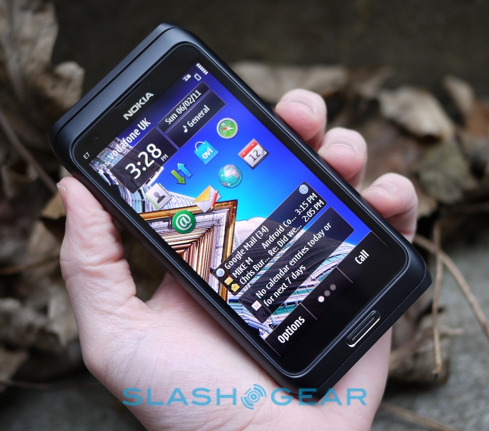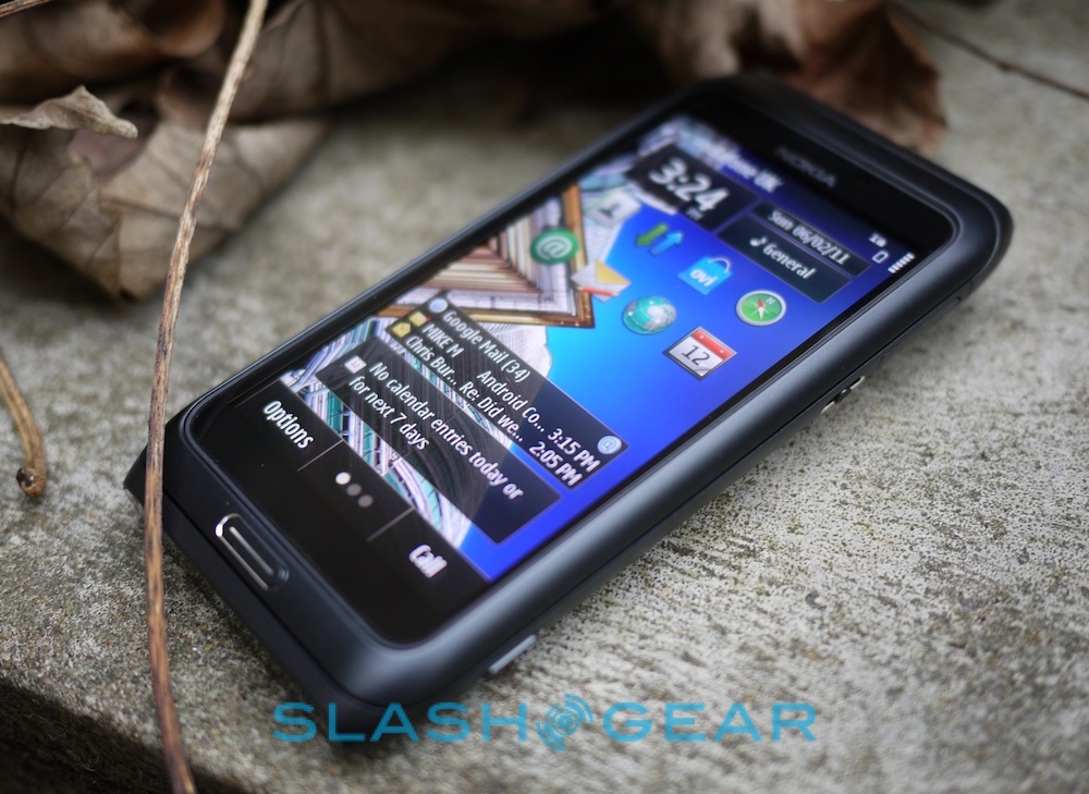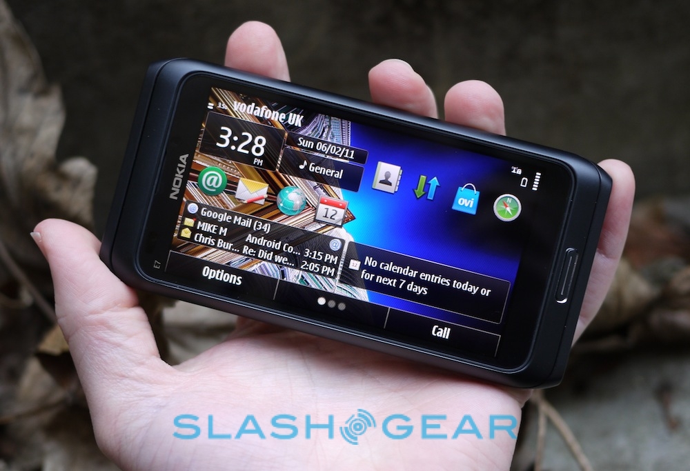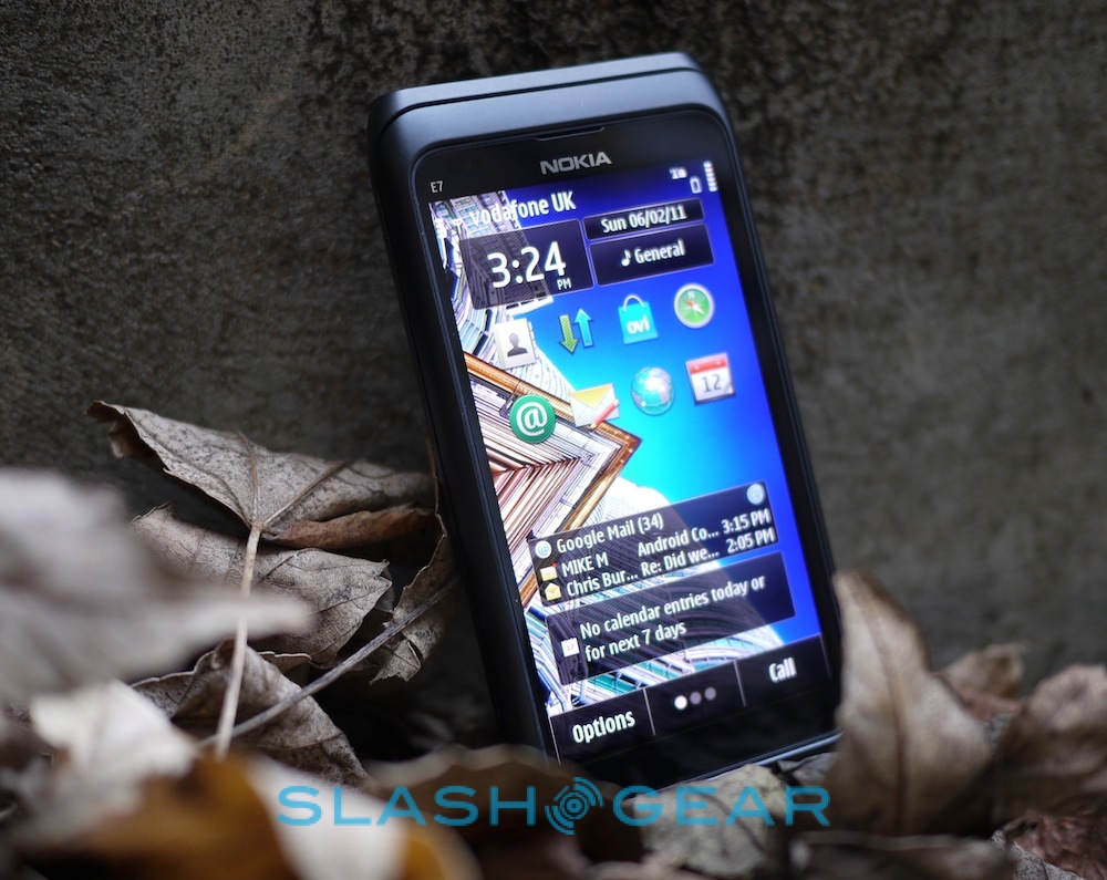 The E7 runs Symbian^3, the same PR1.1 release as just made public for the N8, though of course renamed PR1.0 for the newer device. That makes it instantly familiar to existing users, but also means it faces the same uphill struggle to convince would-be buyers that Symbian remains competitive in the face of Android, iOS and other platforms.