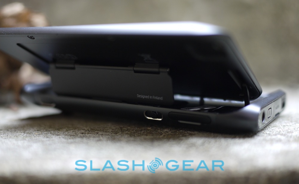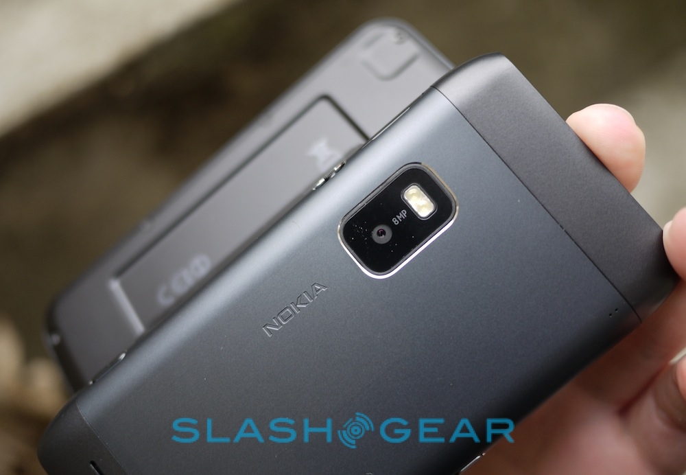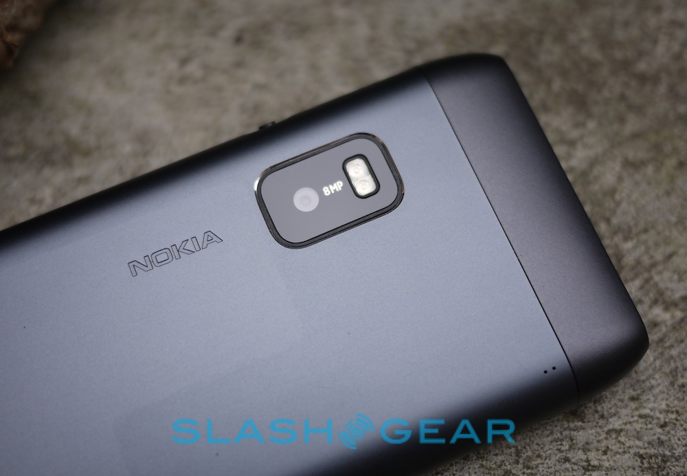 The camera also gets a downgrade in comparison to the N8, a mere 8-megapixels versus the photo flagship's 12-megapixels, and using EDoF (Extended Depth of Field) rather than active auto-focus. It also has a dual-LED flash rather than Xenon. Still, the smaller camera module does allow Nokia to do away with the N8's unsightly hump.