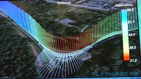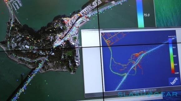 Such a hazard could be traffic, or inclement weather, or it might just be a change in the familiar road. Here, MacFarlane again used a San Francisco bridge as an example, in this case the ongoing works on the Bay Bridge that has seen engineers slot in an "S-bend" curved section of temporary roadway to clear space for the final section. By working with Nokia's team, the bridge authorities could track the different ways that drivers took the old and new roads, and thus spot that the speed limit would need to be lowered since the unexpected layout proved more distracting than anticipated.