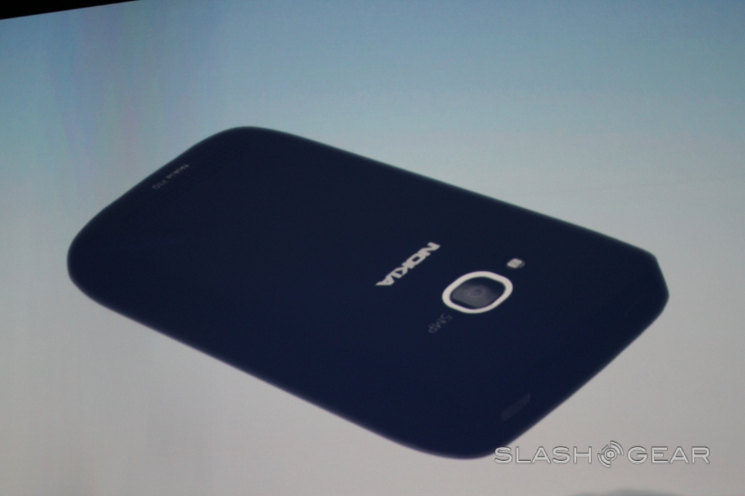 The Lumia 710 design is more similar to previous Symbian handsets than the N9-inspired Lumia 800, a curved handset with a chunkier form-factor than its polycarbonate sibling. Performance from Mango should be the same, however, and there's a 5-megapixel camera on the back.