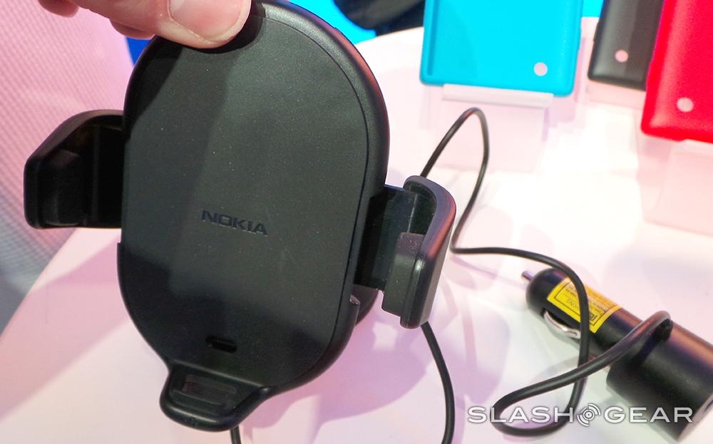Above you'll see the wireless charging case – of which there are several colors – as well as the new wireless NFC-toting car stand. This stand is universal, able to work with any smartphone you've got (the clamp gets pretty wide) and has a space where the bottom of the device is held up, this allowing you to work with a microUSB cord – or whatever cord you use to charge with. The charging port – plugging in to your cigarette lighter in your vehicle – also has a USB port so you can run an additional cord through it.