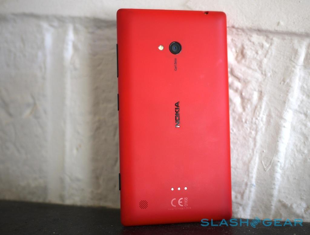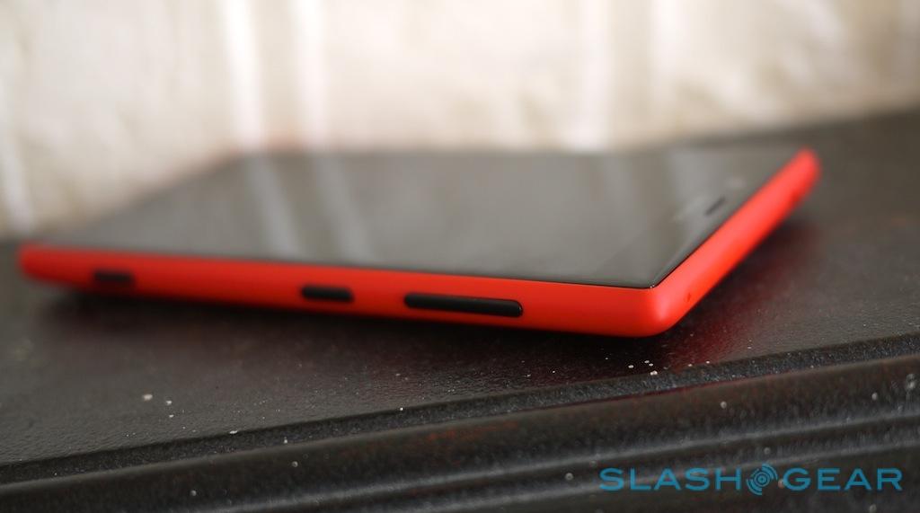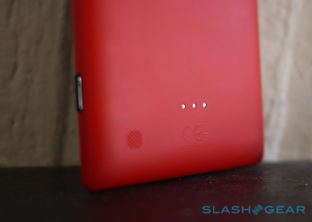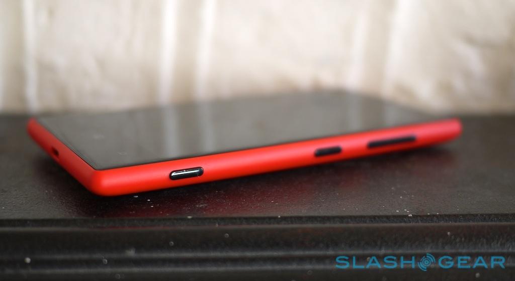 Bare, it's a sturdy unibody with a smooth, matte finish; the red of our review unit is particularly fetching, but Nokia will also offer the 720 in white, cyan, yellow, and black. A Micro SIM-tray on the upper edge means Nokia can keep the back cover fixed – which also means no removable battery – while on the right side there's the usual volume rocker, power/lock key, and camera shortcut. A microUSB port is on the bottom edge, and finally another pop-out tray on the left for a microSD card slot (to add to the 8GB of internal storage).