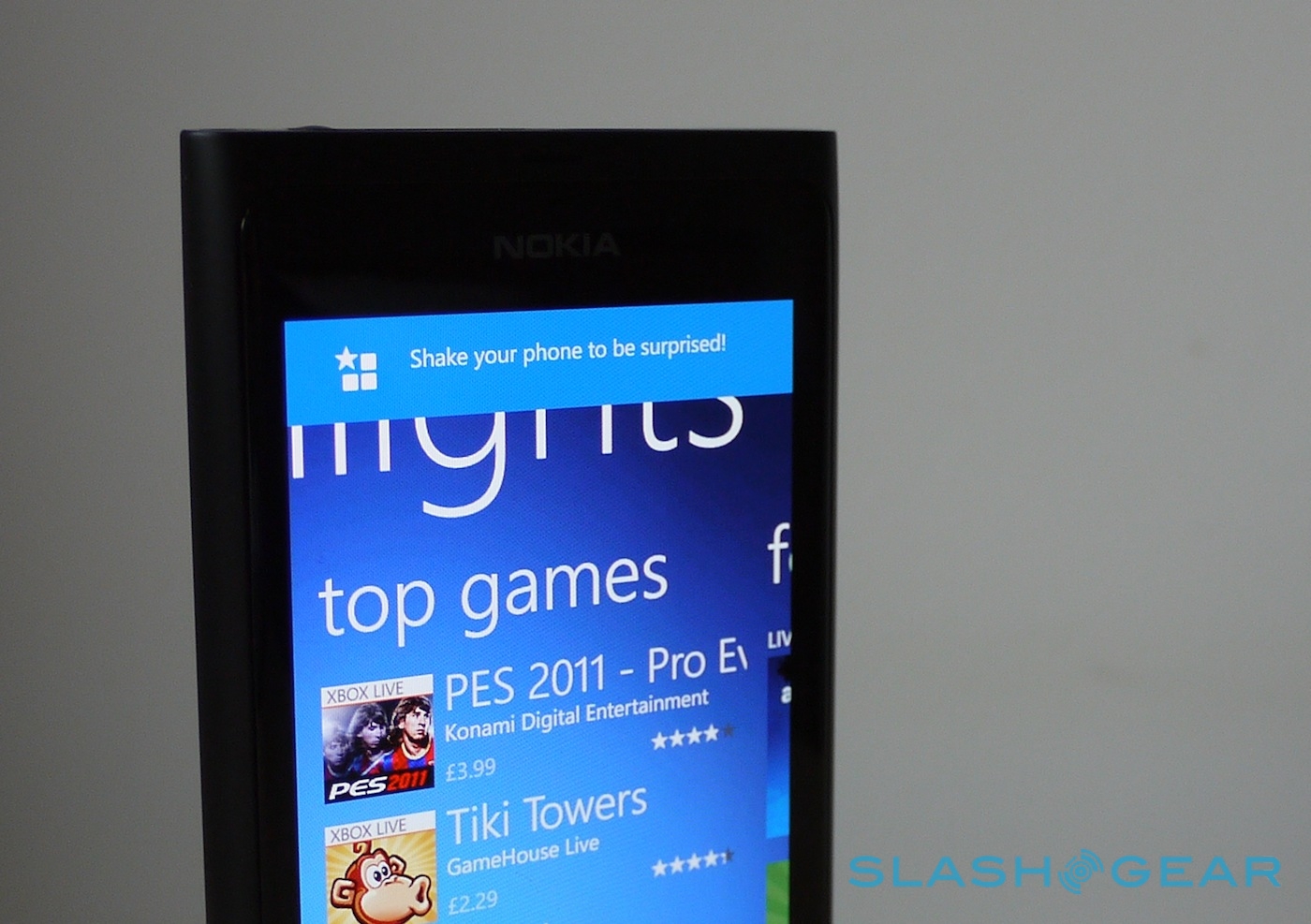 Actually selecting an app takes you to its listing on the regular Windows Phone Marketplace, so Nokia's system is more of a gateway than anything else. Still, the company has built in an unusual suggestion feature: shake the Lumia 800 and it suggests an app at random.