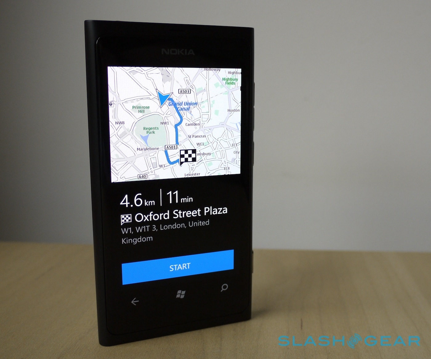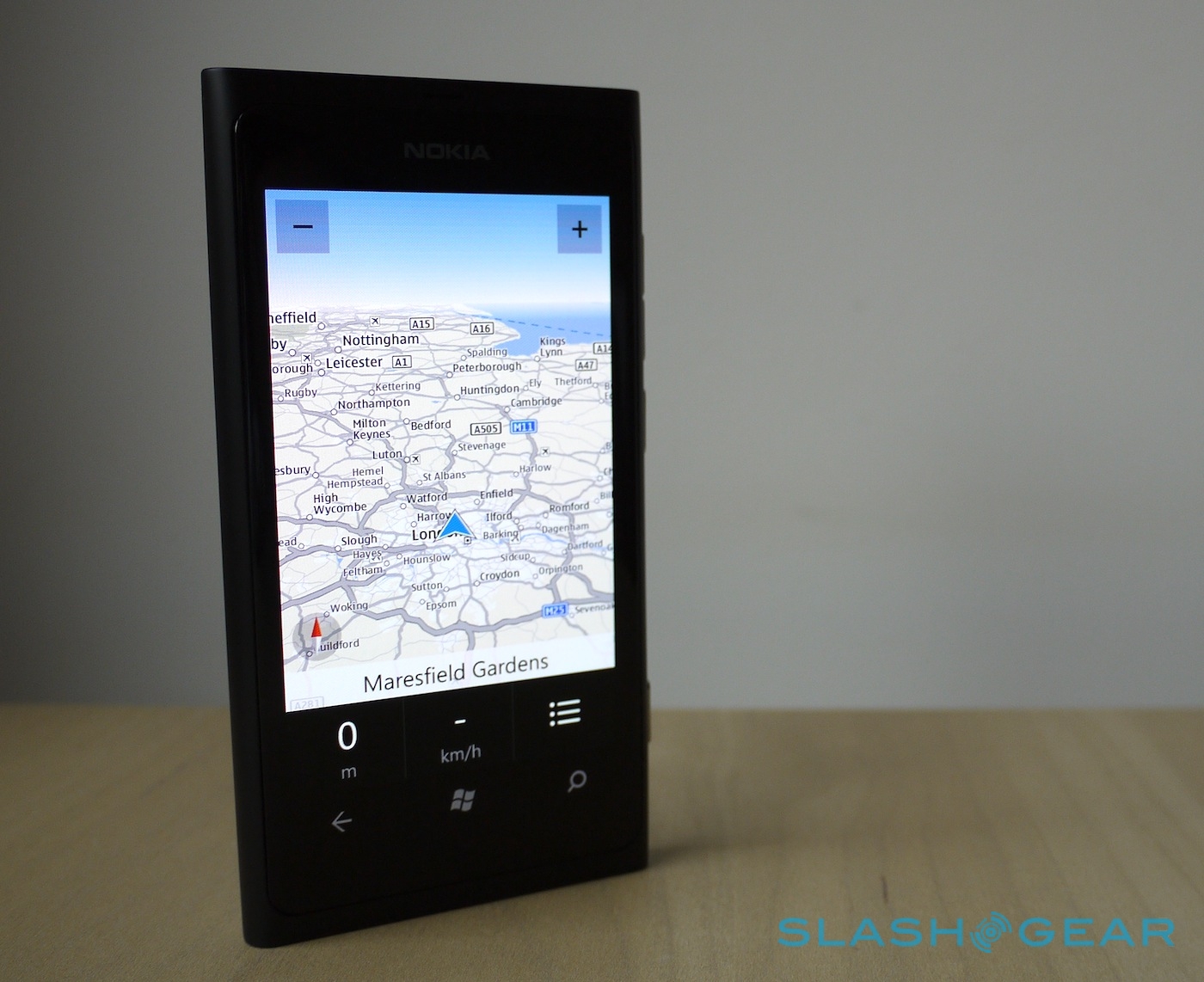 We've always been keen on Nokia's mapping app, from our experience with Symbian devices, and while the UI is a little different to, say, Google Maps, functionally it's very strong. The Lumia 800 locked onto a GPS position very quickly, in just a manner of seconds, and managed to re-orient itself even faster after we'd been indoors or on the underground. If you'd rather stick with Microsoft's own Bing Maps, that's still preloaded.
