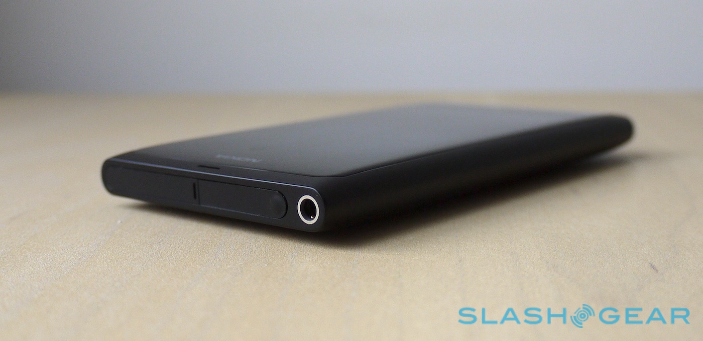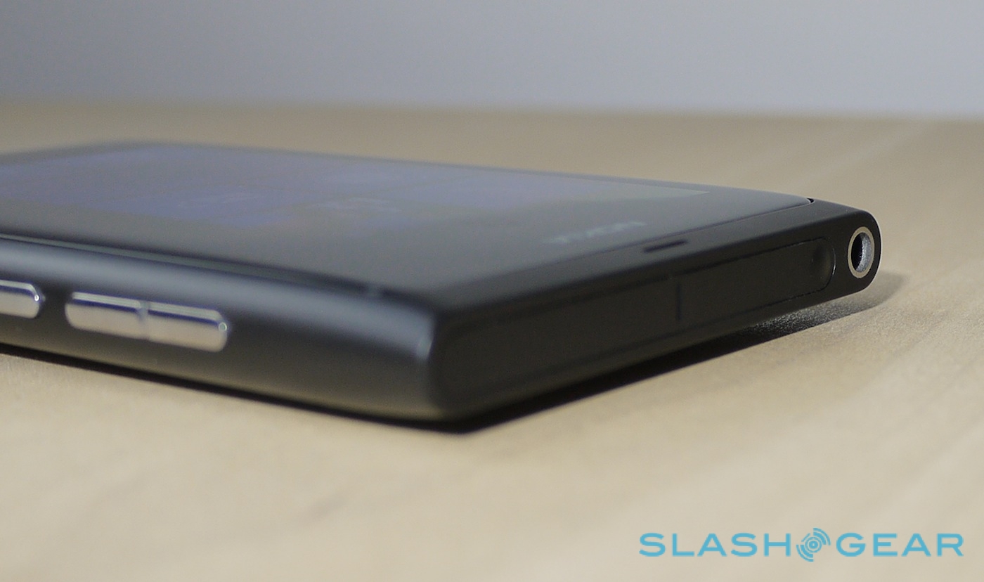 On the bottom is a speaker with decent volume and clarity. Up top is the same 3.5mm headphone socket as the N9 and, under a flap, a microUSB port. Once you've opened the hatch – which is our single point of mild concern about the Lumia's durability, thanks to its seemingly delicate hinge mechanism – you can slide out the microSIM tray too. Unusually, Nokia told us it has been forced to tweak the headphone jack a little in order to work within the confines of the casing design. Its Monster-blessed Purity headsets actually come with a short adapter cable to allow them to be used with non-Nokia phones, though the bundled set of headphones in the box with the Lumia 800 lack that converter. Even so, we had no problems using either the bundled headphones with another phone, or using third-party headphones on the Lumia.