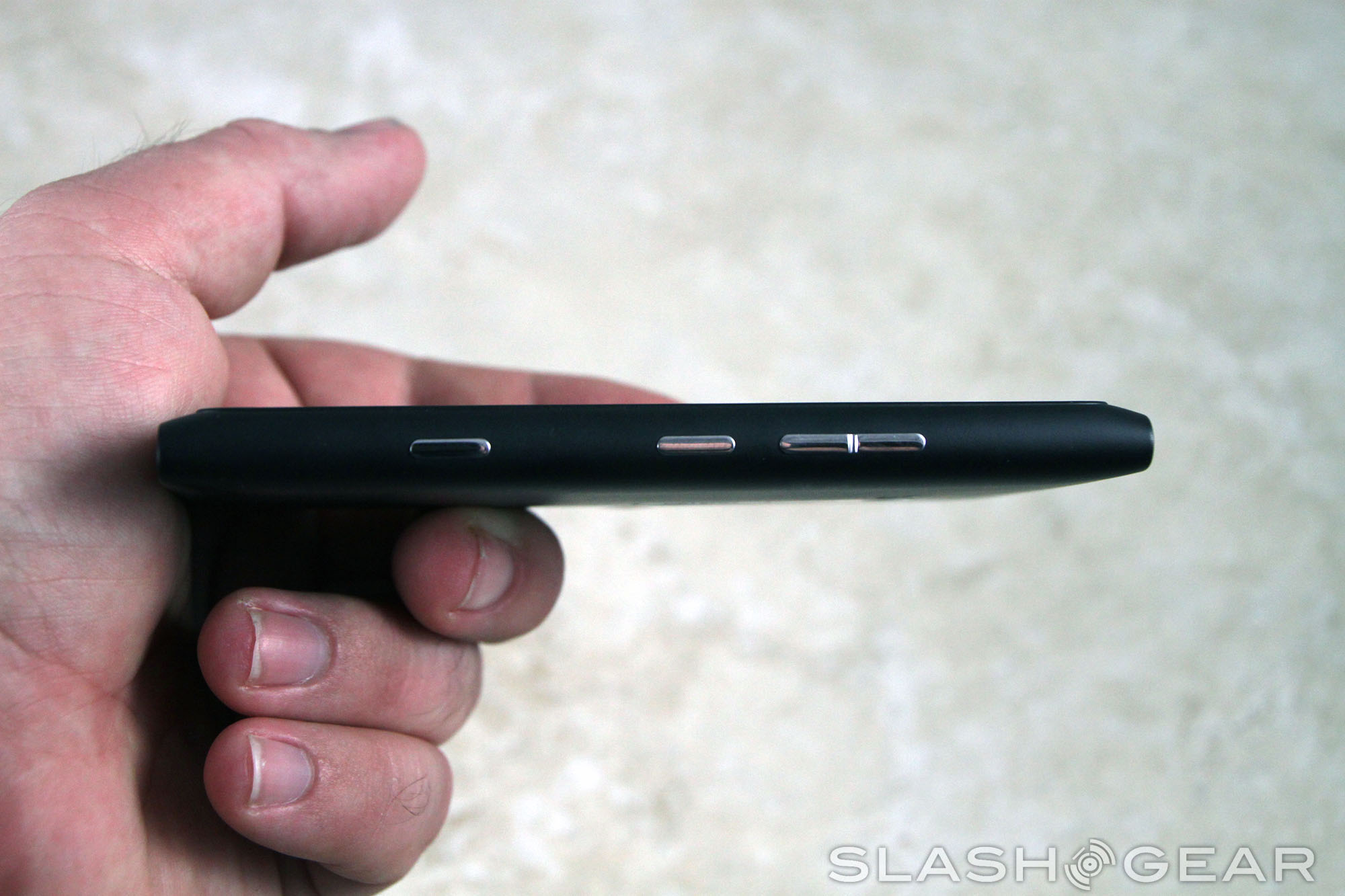 Speaking of buttons, the Lumia has four, all on the right side: volume up and down, the aforementioned Power button and a much-appreciated dedicate power button. On the front there is only the screen, the standard Windows Phone 7 capacitive buttons and the front-facing camera. On the bottom you'll find a strangely placed but appreciably loud speaker, and the top houses the MicroUSB port, headphone jack and a MicroSIM tray accessible by the included key. The left is bare, and the back holds the 8-megapixel F/2.2 camera.