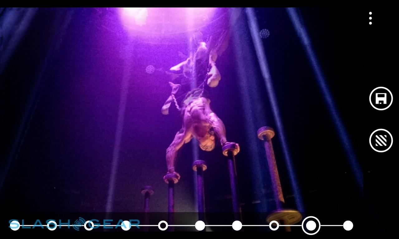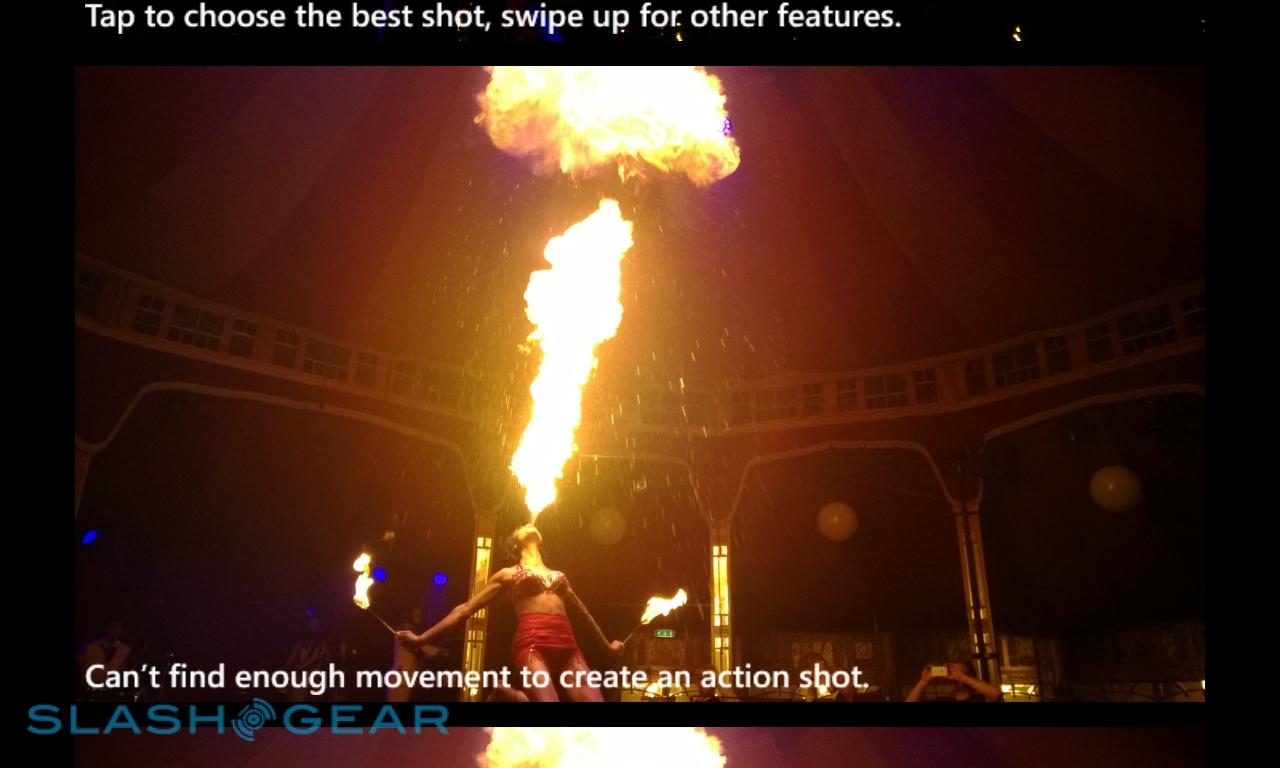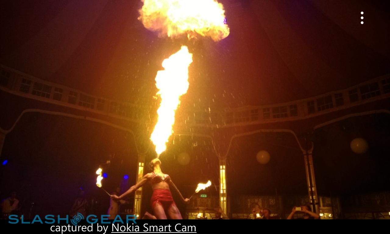 As you might expect, it works, but not every time. Sometimes it's the face recognition at fault, not picking out people, and sometimes the phone struggles to differentiate between subjects and backgrounds. Other times, movement isn't recognized at all – one of our sample images, with an impressive mushroom cloud of flames from the mouth of LIMBO circus' fire swallower Heather Holliday, was deemed to be completely free of movement whatsoever by Smart Camera, which also decided the Best Shot of that particular bunch was one in which the frame was almost entirely dark.