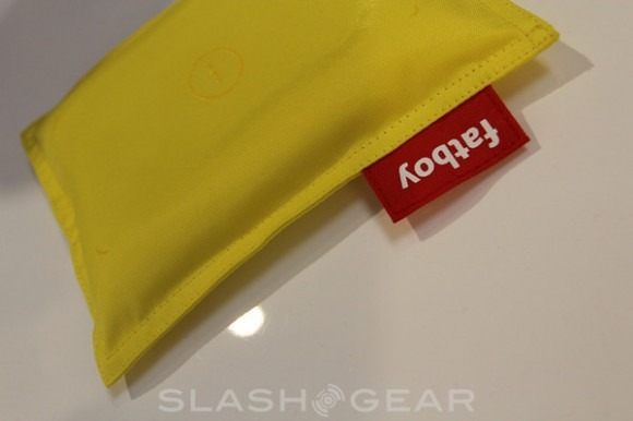 When we said Nokia is going all in on wireless charging we meant it. They partnered with JBL above, and even with Fatboy to announce a wireless charging "pillow". Yea this is actually a soft microfiber pillow with the Qi charging standard built-in. This will be a nice and comfy place to set your lovely Yellow or Cyan Lumia 920, and they've partnered with Virgin Atlantic, Coffee Bean, and Tea Leaf to get these pillows in lounges nationwide. Yes they want you to be able to charge your Lumia while hanging out at the coffee shop — again all wirelessly.