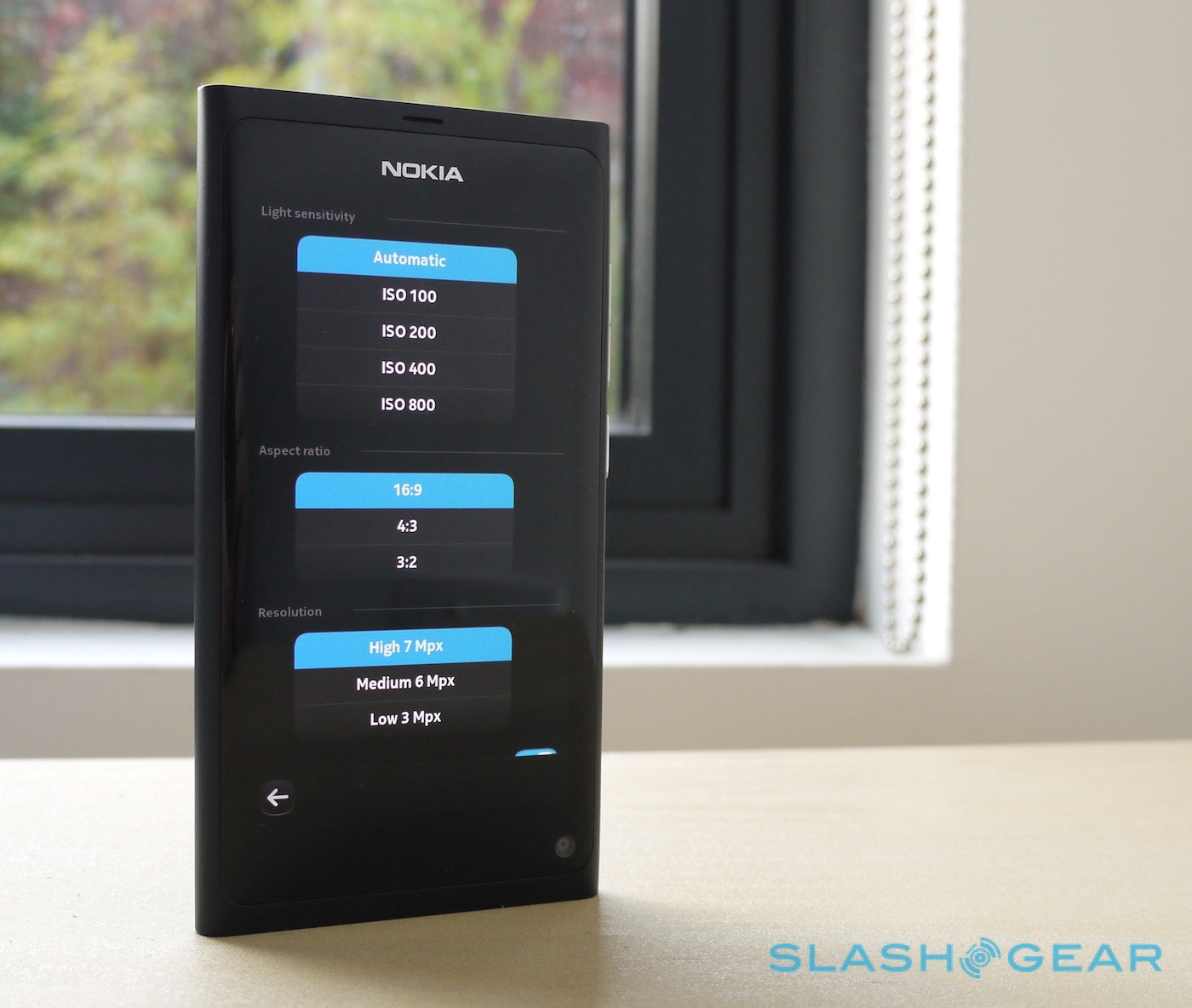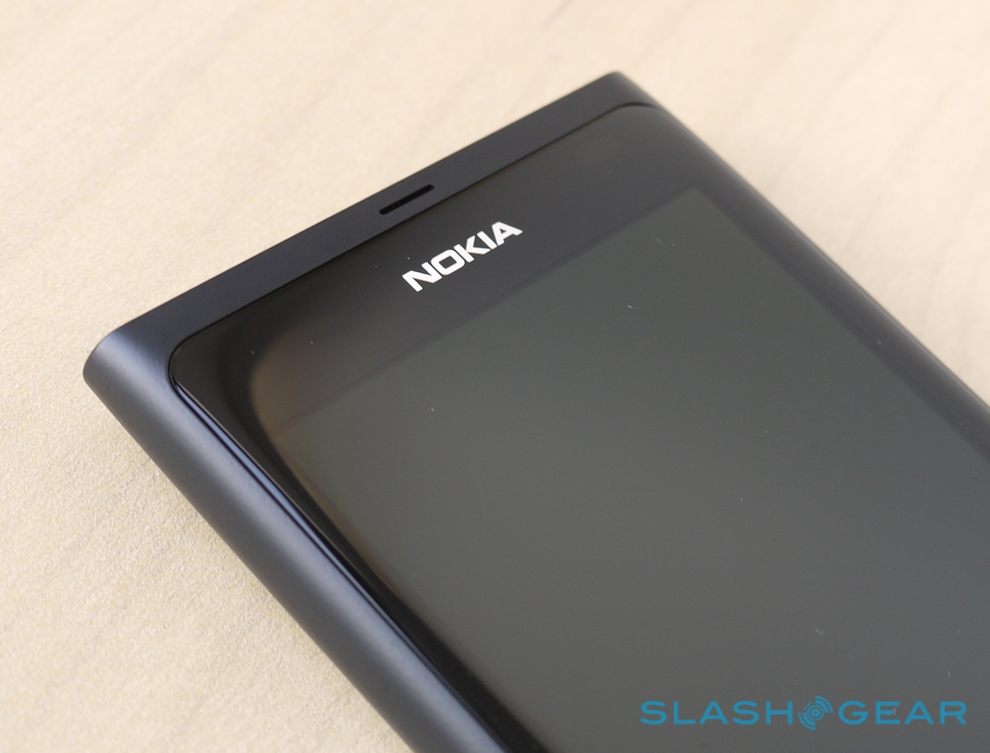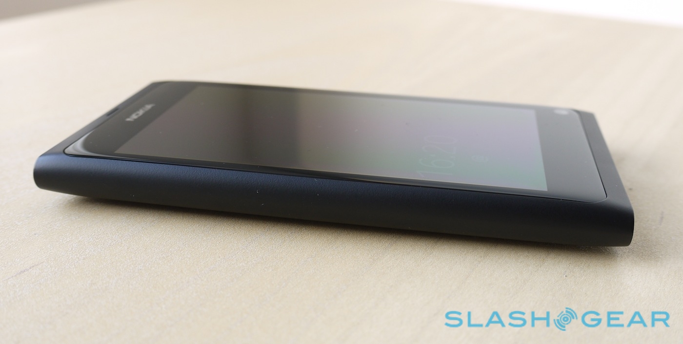 Up front is a 3.9-inch AMOLED capacitive touchscreen running at 854 x 480 resolution, the highest of any Nokia smartphone to-date, and using the company's ClearBlack polarizing system for improved contrast. Nokia is particularly proud of the way the AMOLED and the glass have been constructed, with no air gap in-between. That makes for a picture that seems to float just under the fingertip, or even look as though it's been painted on the glass.