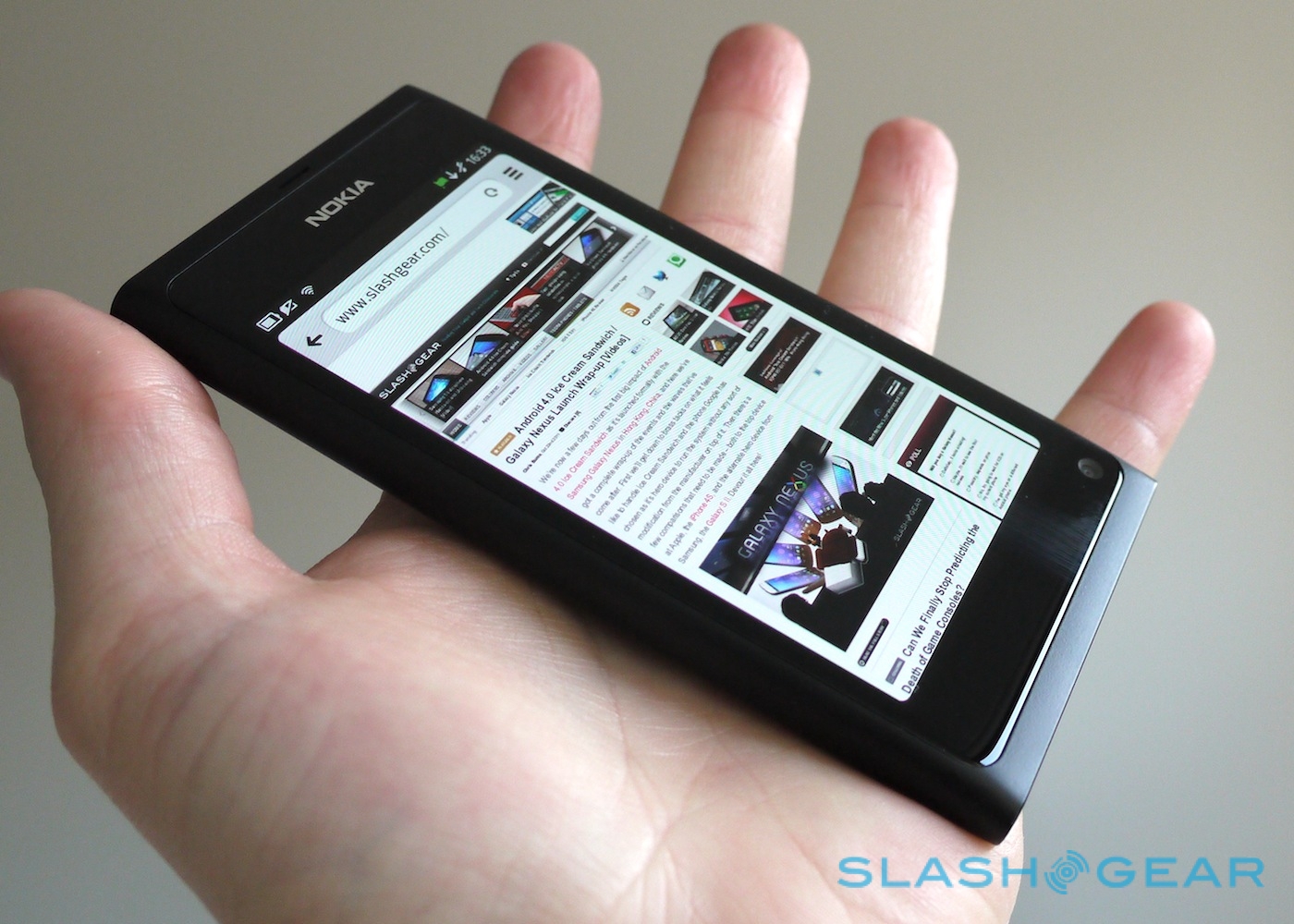 Inside things are a curious mixture of technologies, some at the cutting edge of the segment and others dawdling behind. At its heart, the N9 runs a 1GHz Texas Instruments OMAP3630 processor paired with PowerVR SGX530 graphics and 1GB of RAM, an ARM Cortex A8 combination that was only really bleeding-edge back when Motorola's DROID X launched in mid-2010. That's paired with a pentaband UMTS/HSPA+ radio with support for up to 14.4Mbps downloads and 5.7Mbps uploads. As with other recent Nokia handsets, the N9's 3G will work happily on both AT&T and T-Mobile USA's networks, something that can hardly be said for most other smartphones on the market.