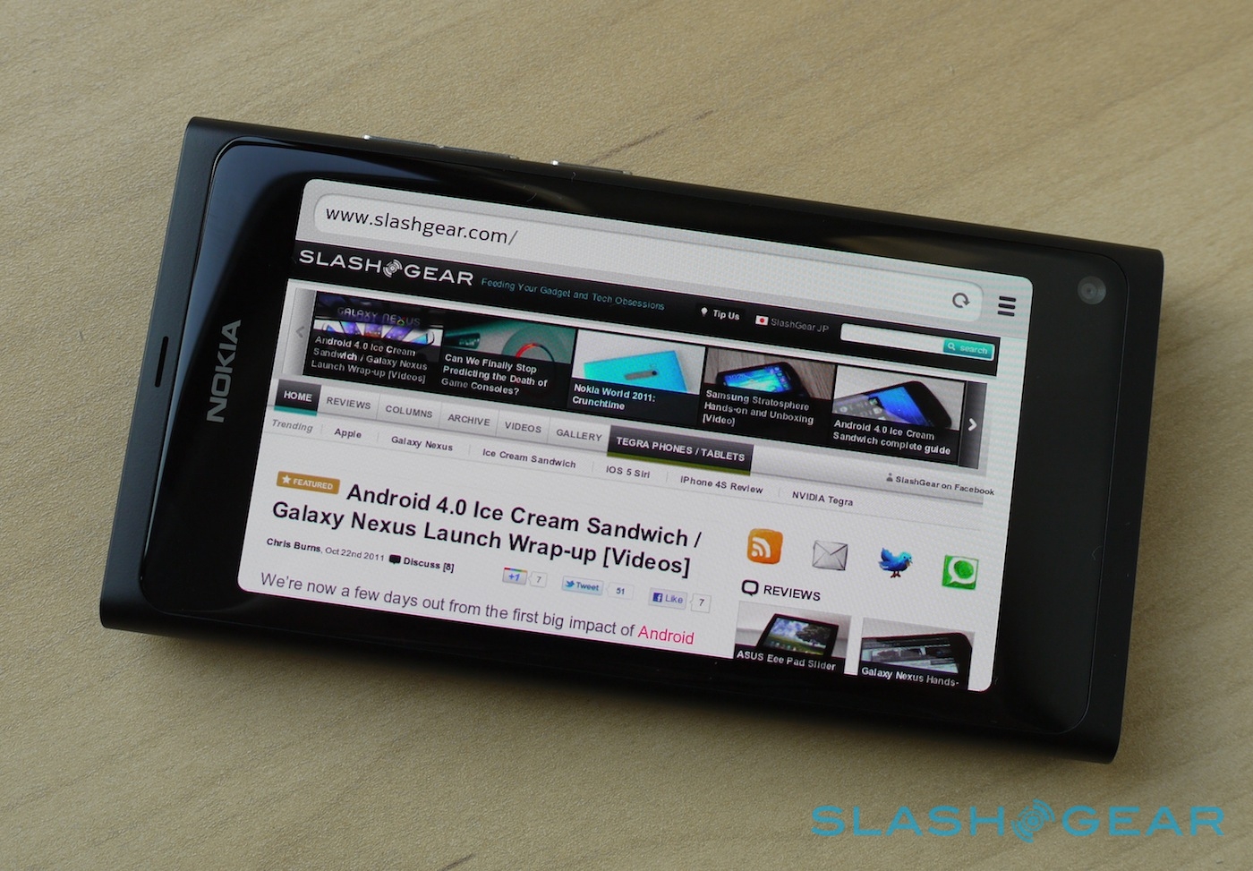 The N9's browser supports pinch-zooming, text-reflow and HTML5, though oddly not Flash, despite that being offered on Symbian phones. Still, it's a neat little app: bookmarks are – either conveniently or overwhelmingly, depending on how addicted to creating favorites you are – saved as icons in the app pane, and each open window is served up individually in the task switcher.