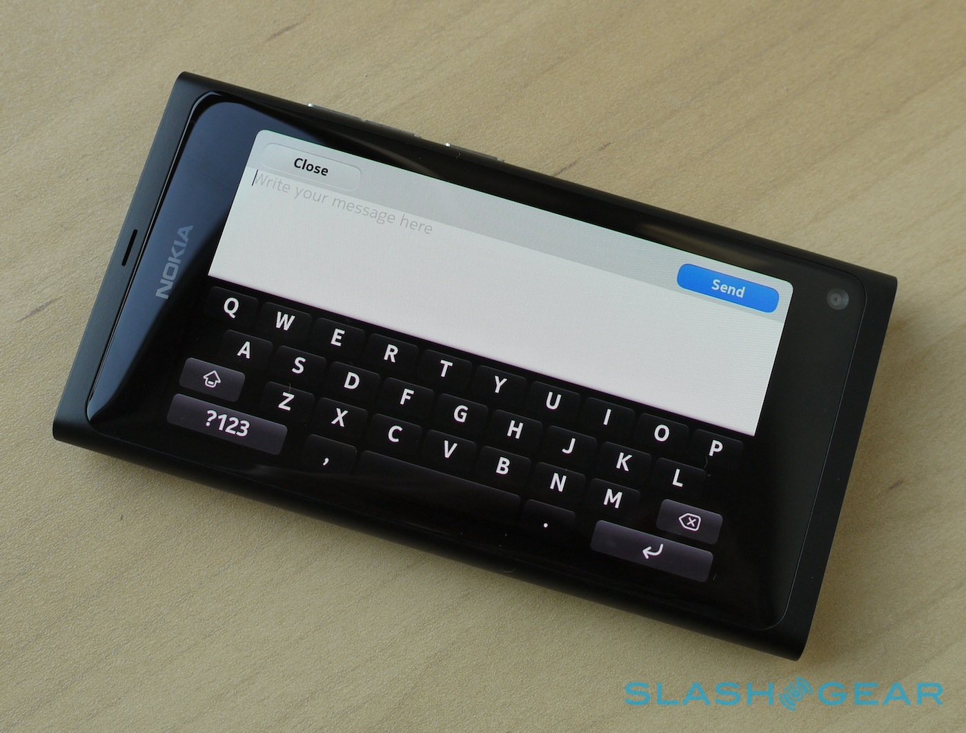 The on-screen keyboard is particularly good, offering both portrait and landscape variants and supporting a sharp haptic buzz that does a great job of feeling localized to your fingertip. Audio feedback is another option. Word correction and auto-complete are each supported, and while the N9 doesn't have as large a screen as, say, some of the more recent Android devices, we still had no issues with accurate text-entry on it.