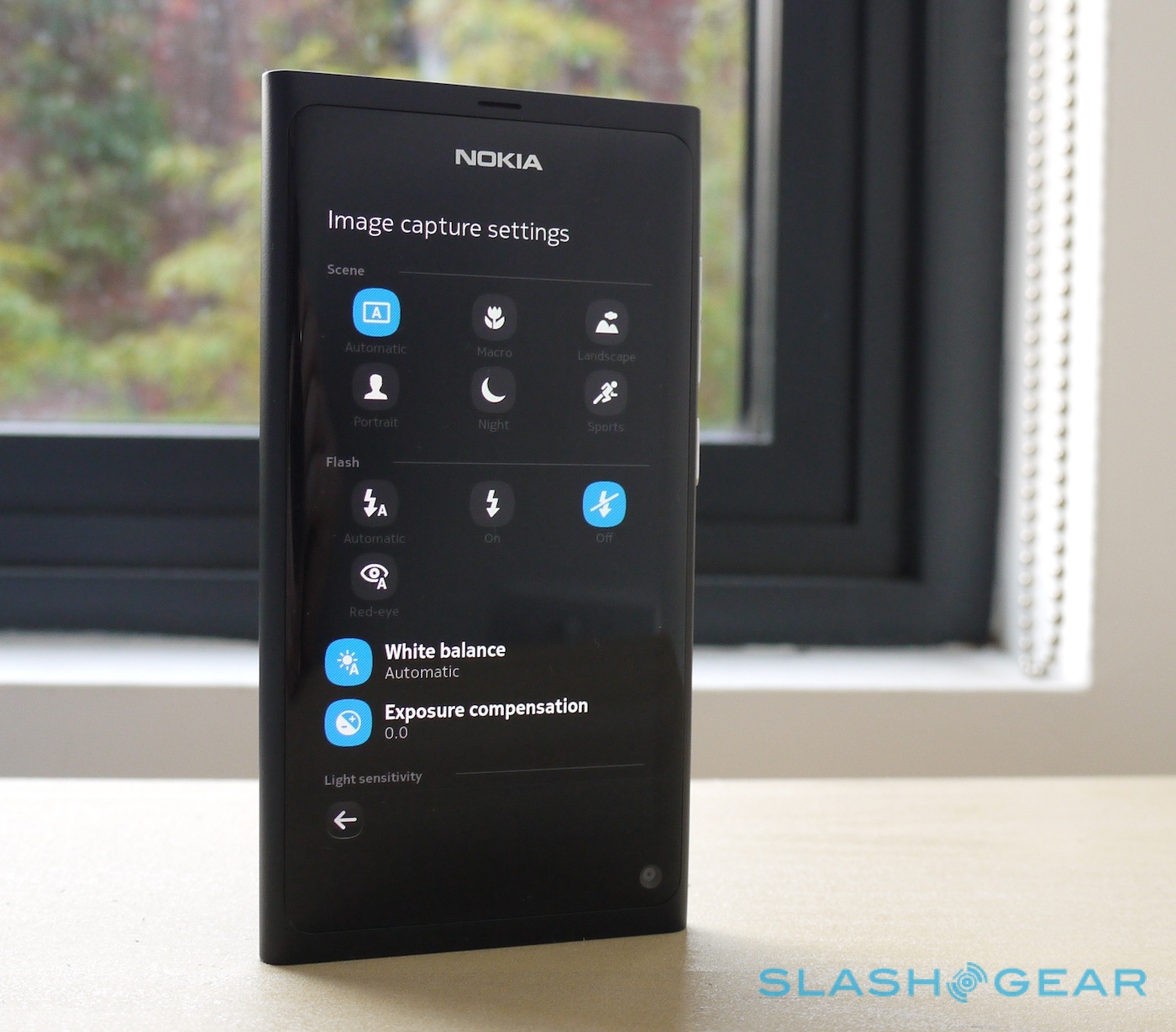 Although the N9 has two cameras, MeeGo only comes set up to to use one of them: thankfully it's the rear-facing f2.2 8-megapixel snapper with the Carl Zeiss optics. The camera app itself is straightforward to use, though there's no dedicated shortcut key; the volume rocker acts as a control for the 4x digital zoom. Touch-to-focus is supported, and the autofocus system in general is quick, though we found it could be a little less accurate during macro photography.