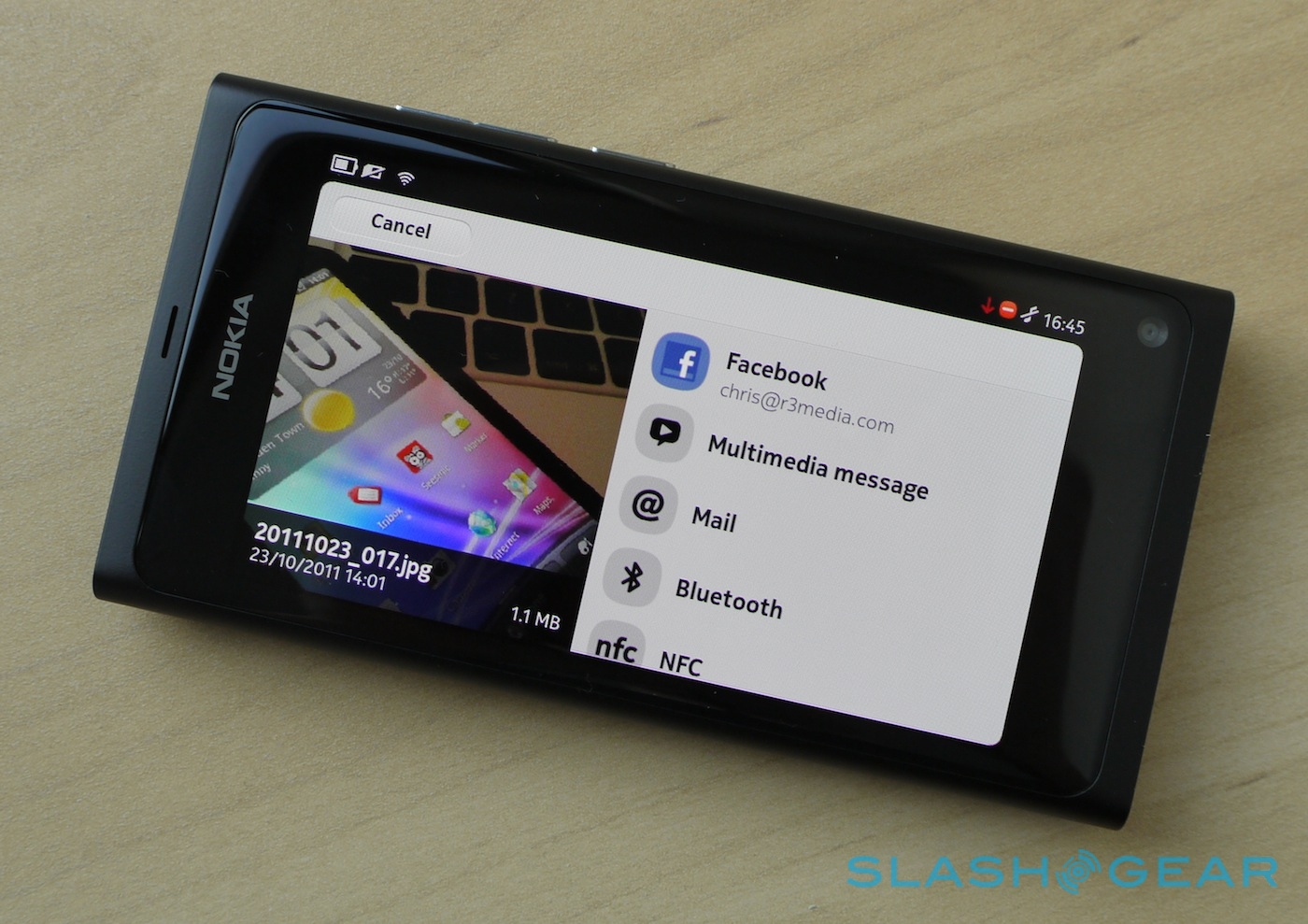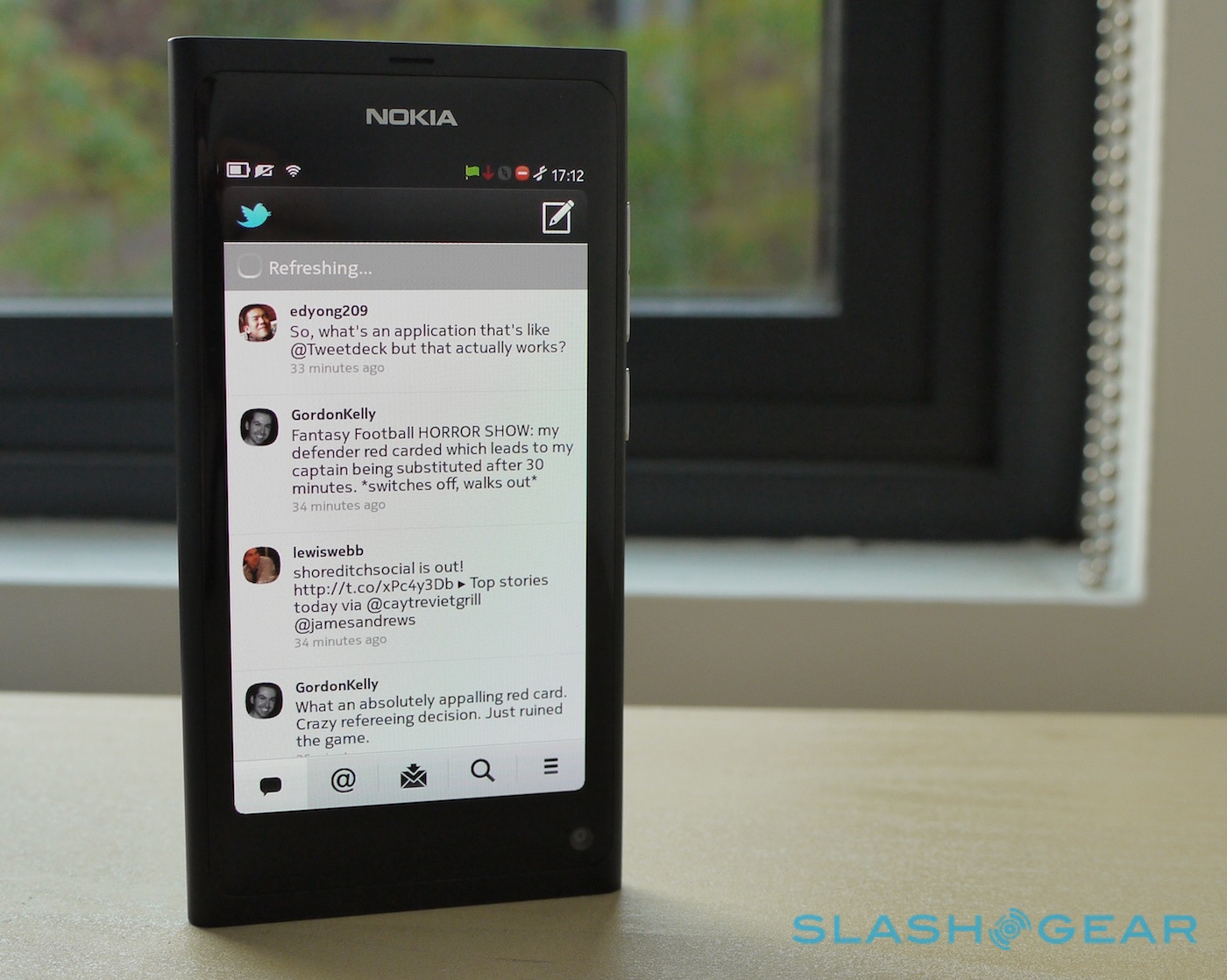 Calendar and Contacts work as you'd expect, combining your Google, Exchange, Facebook and other sources into a single location. MeeGo pulls in profile photos from your Facebook friends, and creates monogram "squircles" for those it can't find. The dedicated Facebook and Twitter apps – which each feed their recent updates into the notifications homescreen pane – are basic but serviceable. Oddly, while you can upload photos directly to Facebook, you can't do the same with Twitter, and you're also limited to just one of each account. Those hoping to manage their work and personal tweets from the N9 will be disappointed.