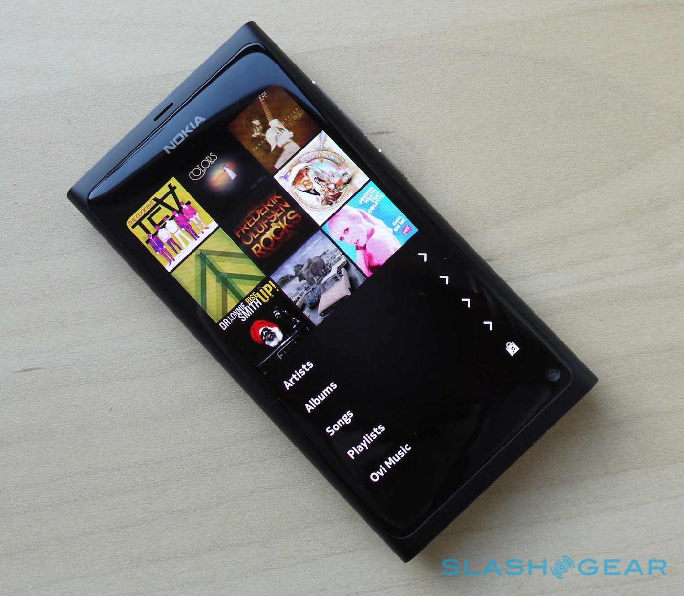 The music app is straightforward and somewhat reminiscent of an iPod in its UI. Album art thumbnails cluster at the top of the screen, with links to Artist, Album, Song and Playlists below. There's also access to the Ovi Music store, offering MP3 song and album downloads directly to the N9. Audio quality from the integrated speaker was loud and clear, with the phone doing a decent job of cranking up volume without suffering too much distortion. Finally there's the video app, which seems intended for side-loaded clips rather than those you shoot yourself with the N9's camera. H.263, MPEG4-SP & ASP, H.264 BP/MP, WMV9 / VC-1 and Mkv (Matroska) formats are supported. There's no apparent way to access your own footage from the app; instead you have to play it back through the gallery.
