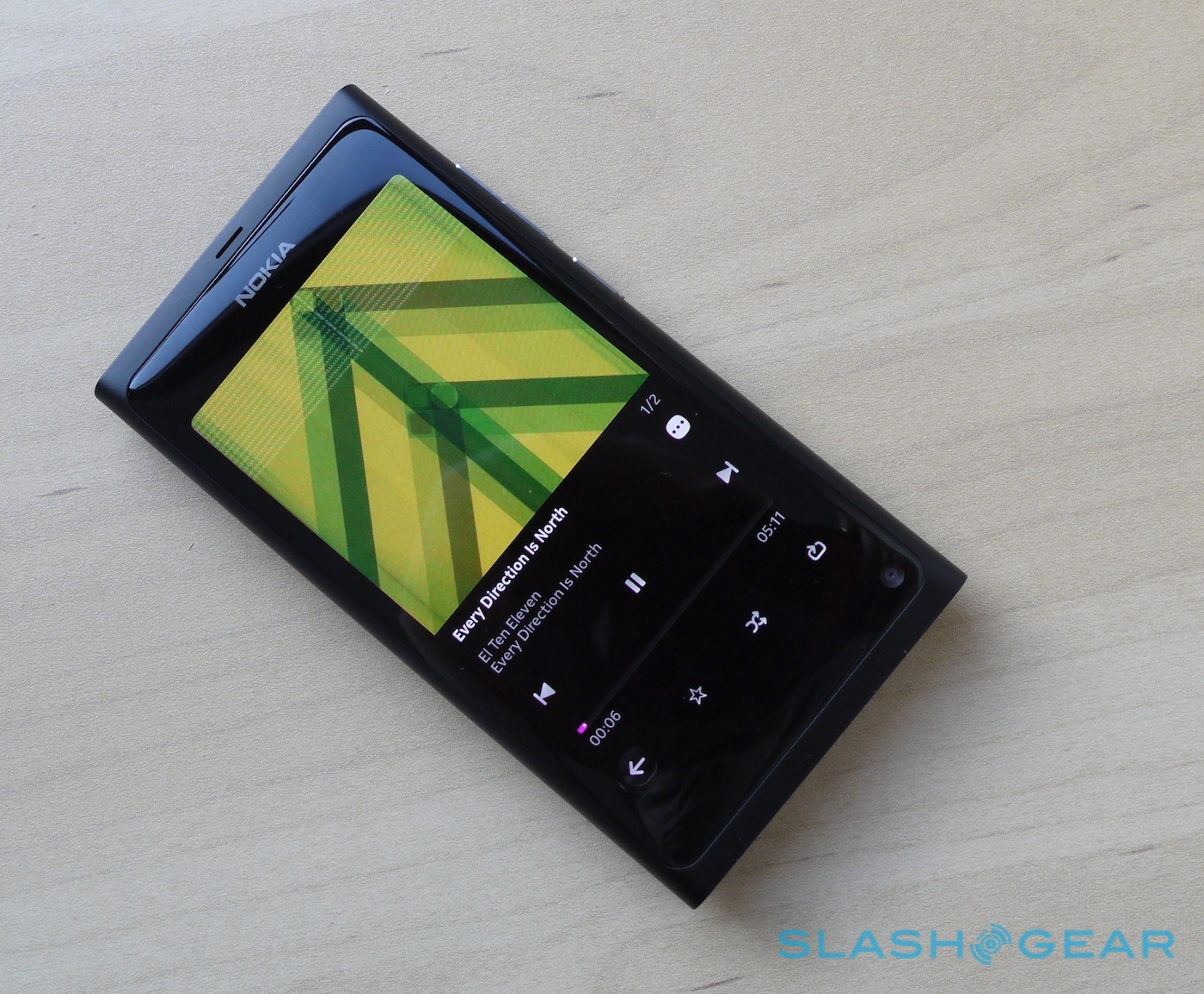 Then there are the various sensors, the accelerometer and digital compass, a proximity sensor, ambient light sensor and GPS/A-GPS. No FM radio, nor an FM transmitter, but you do get NFC: Nokia uses that with its newest accessory line-up of speakers, headsets and cordless headphones, bypassing the traditional Bluetooth PIN-pairing system and instead allowing you to tap the N9 to the peripheral and, after a second or two, have them connect automatically. A second tap disconnects. It's a system that works surprisingly well, with music playback automatically re-routed while in-progress calls are handed over instantly between the phone's speaker dual microphone array and your Bluetooth headset. Of course there's WiFi a/b/g/n too.