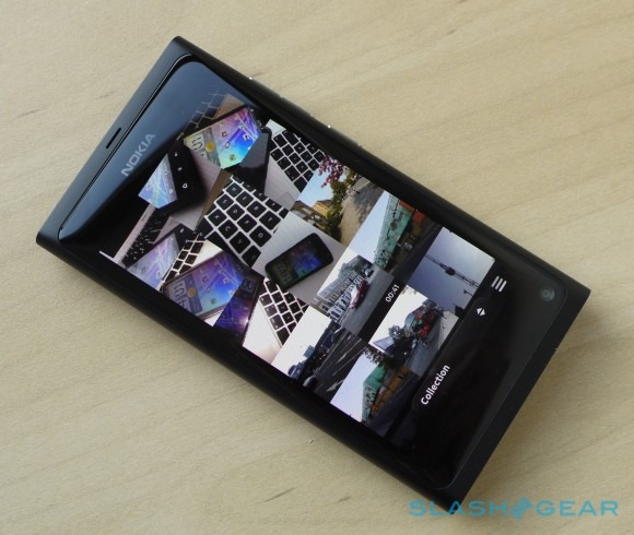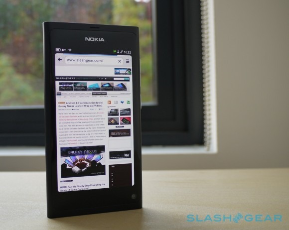 Up front is a 3.9-inch AMOLED capacitive touchscreen running at 854 x 480 resolution, the highest of any Nokia smartphone to-date, and using the company's ClearBlack polarizing system for improved contrast. Nokia is particularly proud of the way the AMOLED and the glass have been constructed, with no air gap in-between. That makes for a picture that seems to float just under the fingertip, or even look as though it's been painted on the glass.