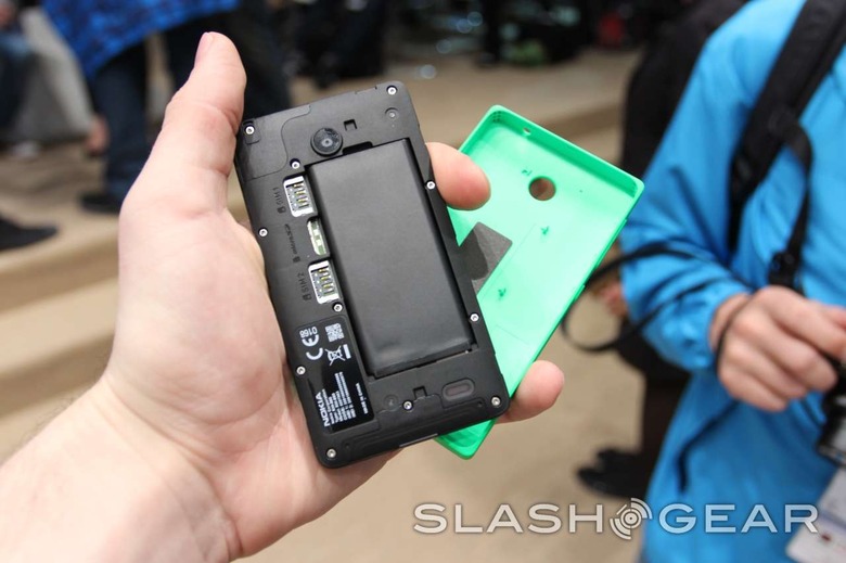 The resemblance between Lumia and Asha is clear from the outset. Nokia will offer the Nokia X in six different colors – the same green, black, white, yellow, cyan, and red many Lumias come in – but since the matte-finish polycarbonate shells are interchangeable, owners will be free to mix and match. The core of the phone slots neatly and securely inside, and the whole thing is not only creak-free but, should you inadvertently scratch the plastic, hides scuffs well since it's body-colored all the way through.