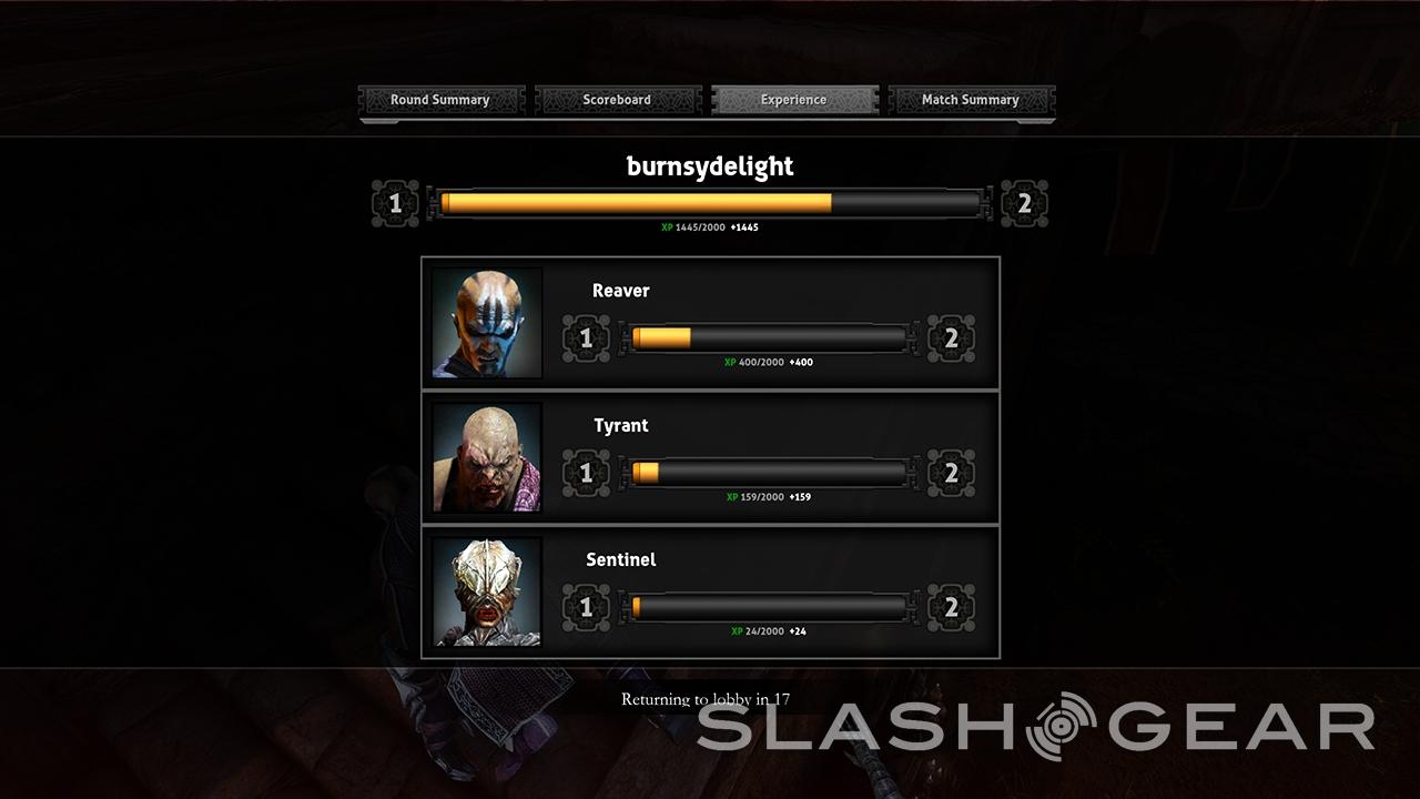 For the Humans fight an Alchemist, Hunter, and Scout, while for the Vampires fight a Sentinel, Tyrant (massive), and Reaver. The Sentinel can fly, but isn't as robust as the Tyrant, while the Reaver stands as the most balanced of the Vampire crew – from what we've been able to tell so far, that is. Meanwhile the Alchemist has a collection of high-powered spells for magic while the Scout has the ability to aim with concentration.