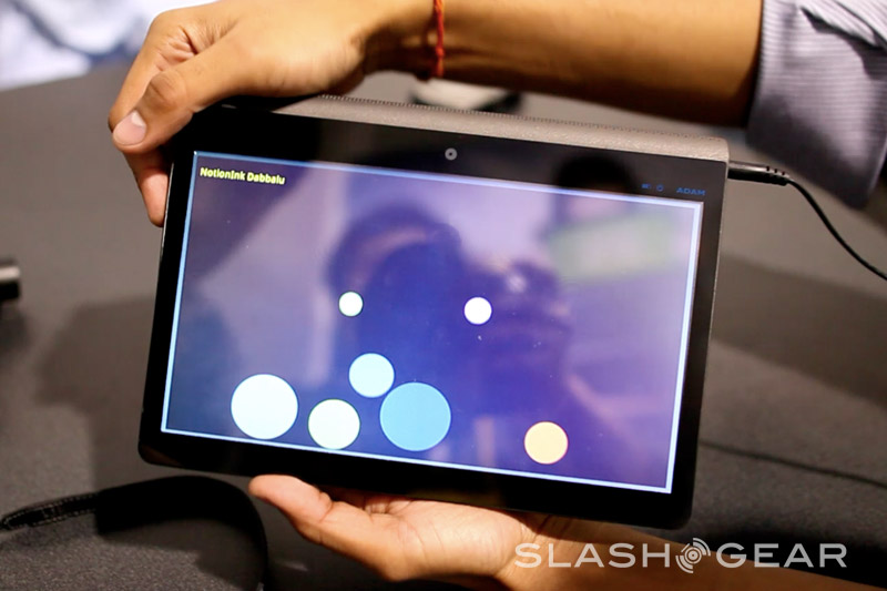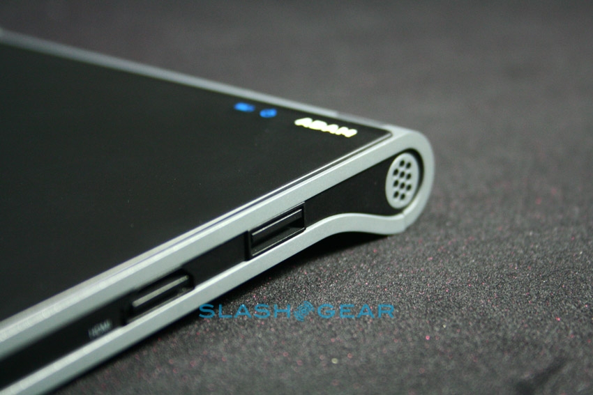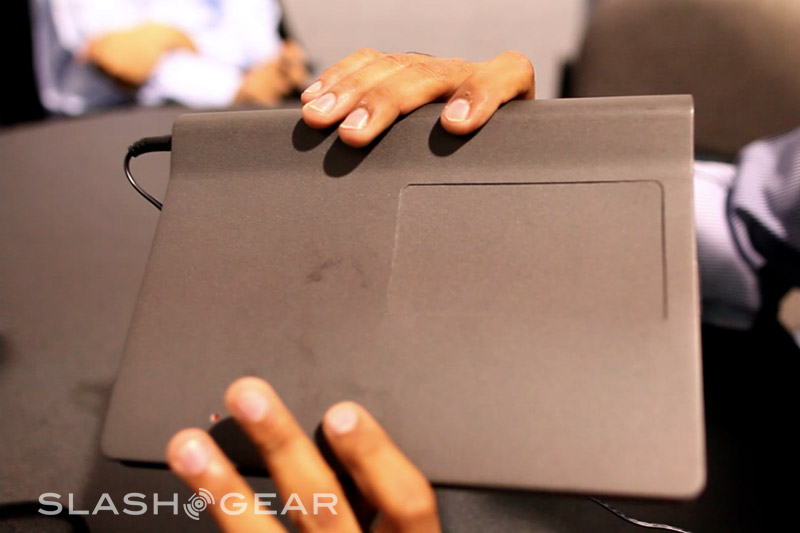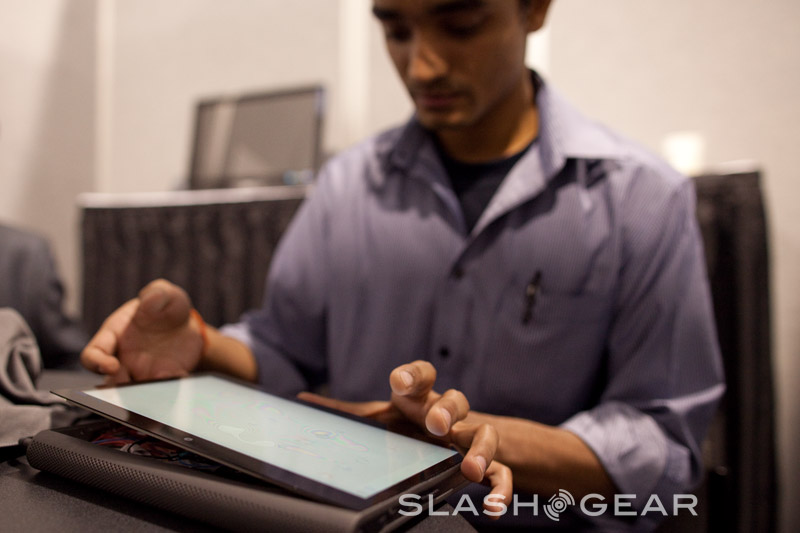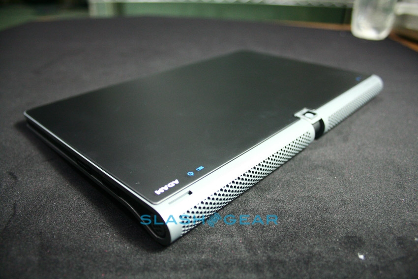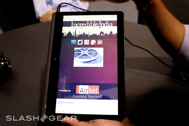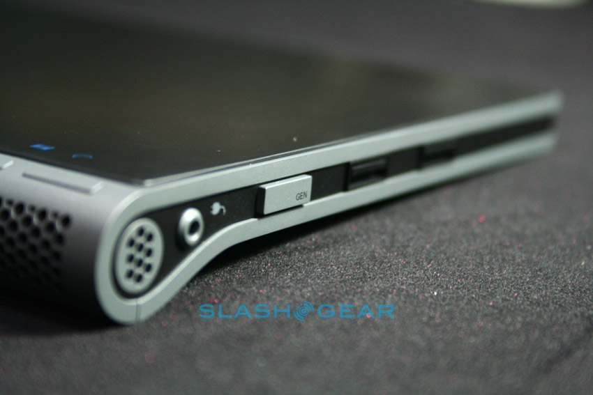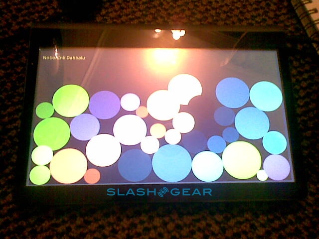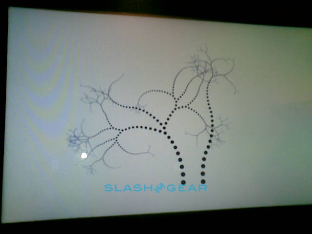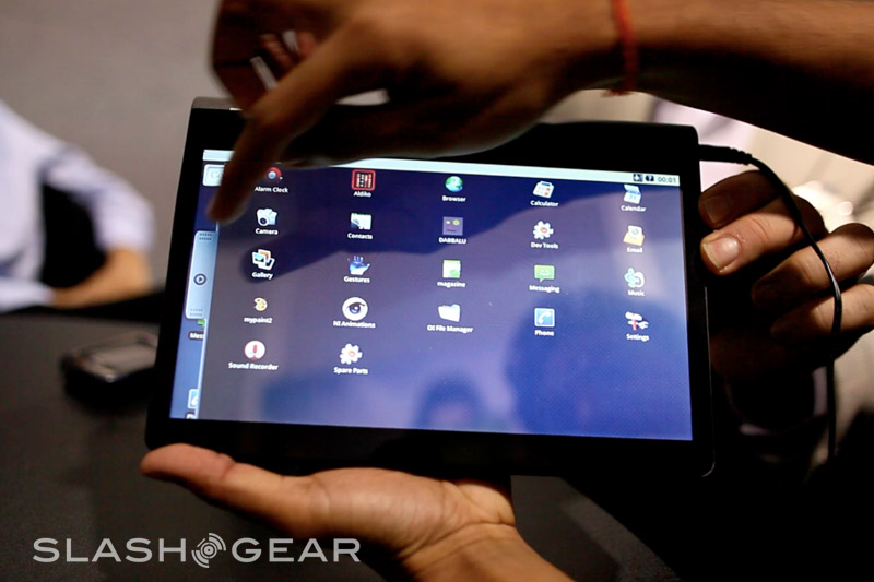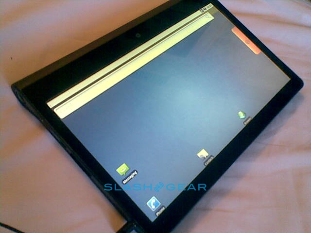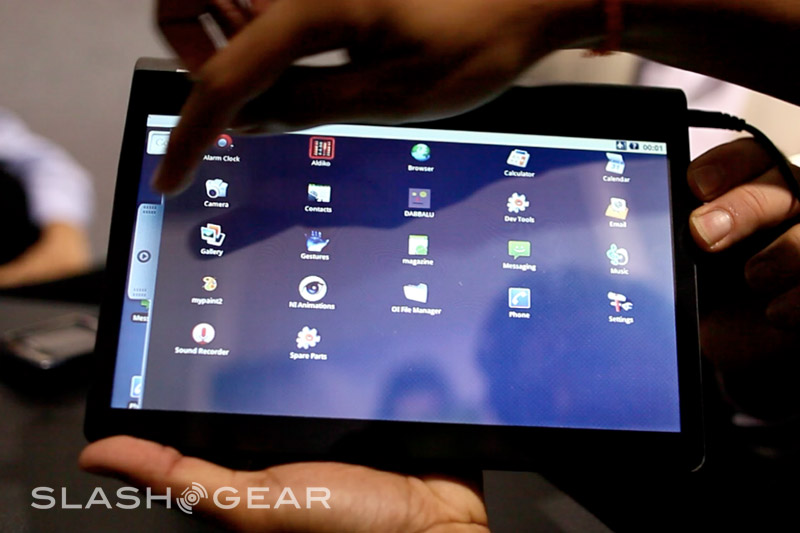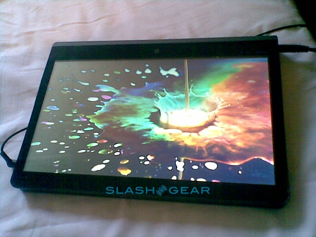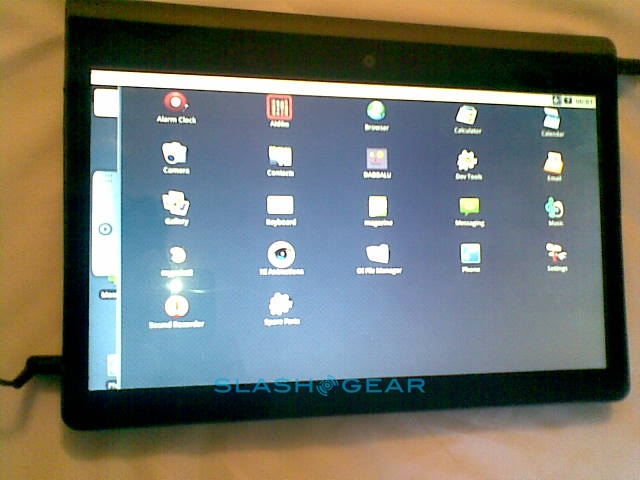 Since it's a prototype the Adam's casing here is not what the final design will be; in fact this was hand-made especially for showing the tablet at CES. The eventual hardware will be 14mm thick (Rohan said they could even get it down to around 12mm) with a reasonably minimal bezel, packed with the 10.1-inch Pixel Qi transflective display, a capacitive touchscreen eventually capable of recognizing six simultaneous points of contact, integrated WiFi and 3G. Thanks to Tegra 2 the Adam is 1080p capable, with an HDMI port to output to an HDTV or projector, and while the OS they're showing today is bare Android they've a new UI in the works complete with a replacement on-screen keyboard more ergonomically designed for large-touchscreen use.