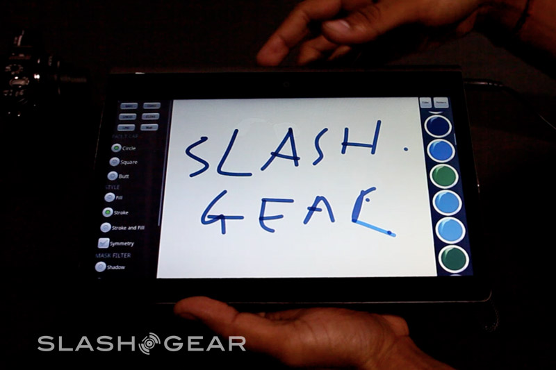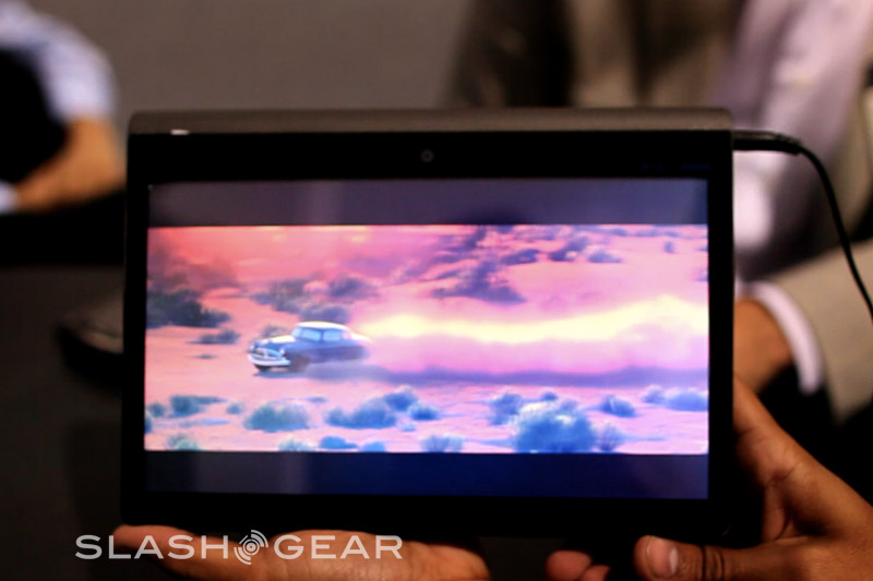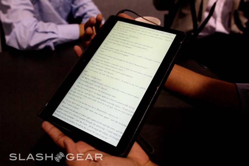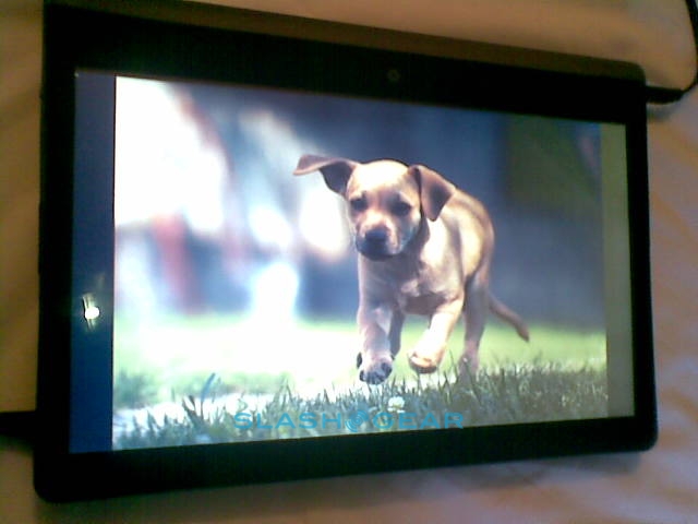 The Pixel Qi display and the frugal Tegra 2 chipset mean that despite the HD video capabilities, the Adam should excel in battery life, too. NVIDIA are saying tablets with regular displays (consuming around 2W) using Tegra 2 will last for around 16 hours of Full HD video with a standard 3-cell battery; Rohan says that, because their display uses just 0.2W in its electrophoretic reflective mode, with that 3-cell battery you'll potentially see up to 160 hours use. Remember, that's not just 160 hours of static E Ink style text, but the potential for video playback and digital content reading in color. Rohan also threw out a quick teaser about some unannounced upcoming features: if Tegra 2 has 12-megapixel camera support, what might you use that support for on a tablet? We're stumped right now, but we reckon MMtech Online readers might have some suggestions.