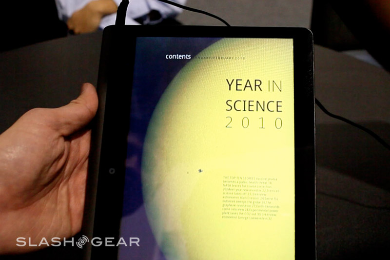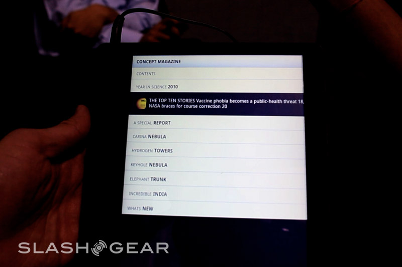 So far so good, but what other sites haven't been able to show you is the digital magazine dynamic content that will be a centerpoint of the Notion Ink experience when the Adam tablet launches. Notion Ink are working with various content producers – including some big-name blogs – to "reinvent" magazines and newspapers, and while they wouldn't share any partner names they did show us some initial concepts.