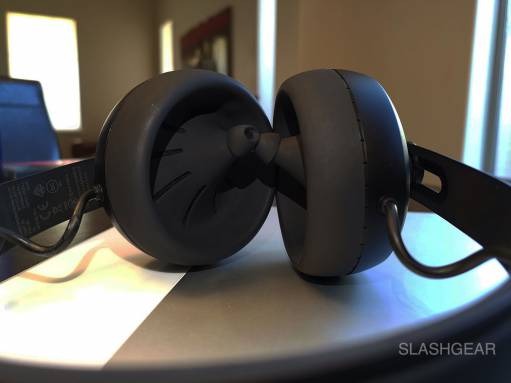 Of course, you could also just tap on either of the two flat circles on each ear cup. These are touch-sensitive surfaces that can be assigned any control, including Immersion Mode, Social Mode, and, with the latest G2 update, volume up or down. Sadly, their vocabulary is limited to single and double taps for a total of only four actions. Before the update, those touch-sensitive "buttons" were also too sensitive. Fortunately, that's now fixed to wait for a slight delay in case you or someone else brushed on the surface by accident.