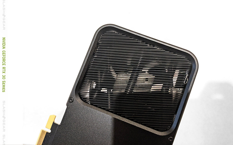 Unlike the 3080, the RTX 3070 has both fans facing the same side. You'll still want to leave room (if at all possible) for airflow as the RTX 3070 still works with a fan system that moves air through, not just in or out. Here you'll see the back of card – notice how you can see the fan through the vents.